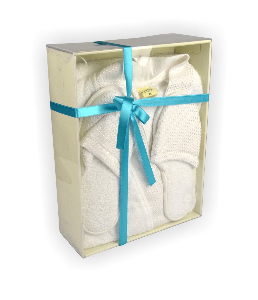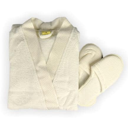 Махровий халат виготовлений з високоякісної сировини з 100% бавовни, м'який і приємний на дотик. Комплектується в наборі з тапками.