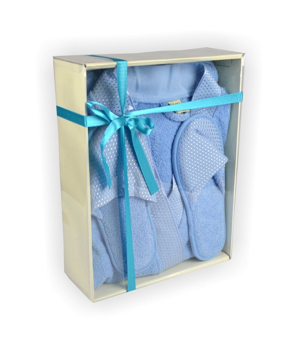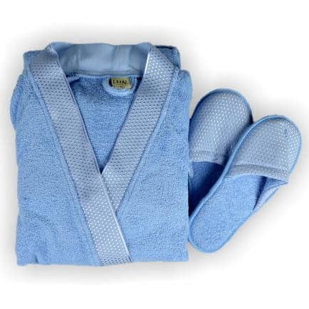 Махровий халат виготовлений з високоякісної сировини з 100% бавовни, м'який і приємний на дотик. Комплектується в наборі з тапками.