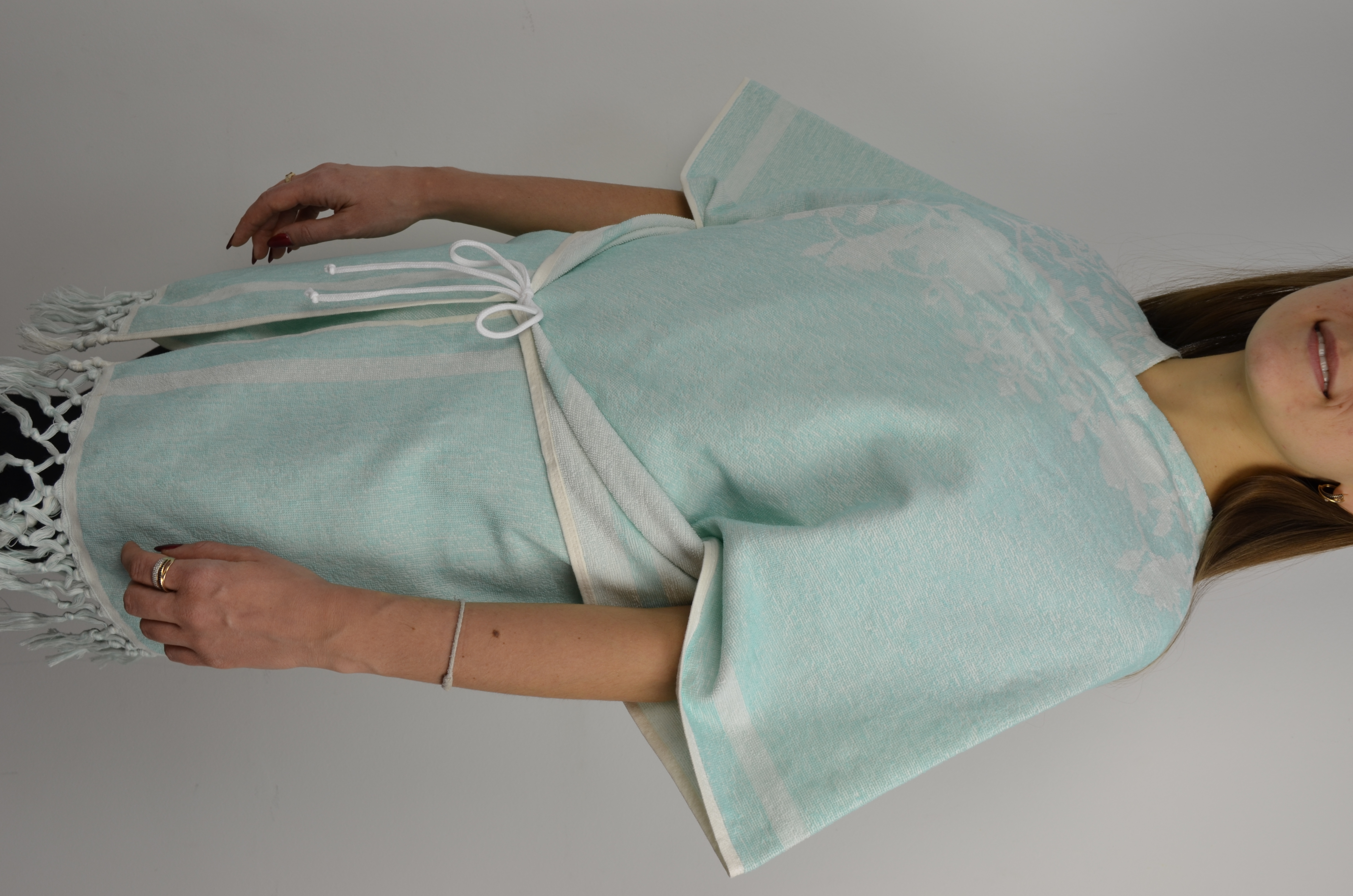Махрове пончо дуже зручно і комфортно брати як на пляж, так і у подорож, оскільки воно легке і компактне, займає мало місця. Воно має стильний фасон універсального розміру. Махрове пончо виготовлене з натуральної бавовни. Тканина відмінно вбирає вологу, швидко сохне. Гарне махрове пончо стане незмінним атрибутом Вашої літньої відпустки.