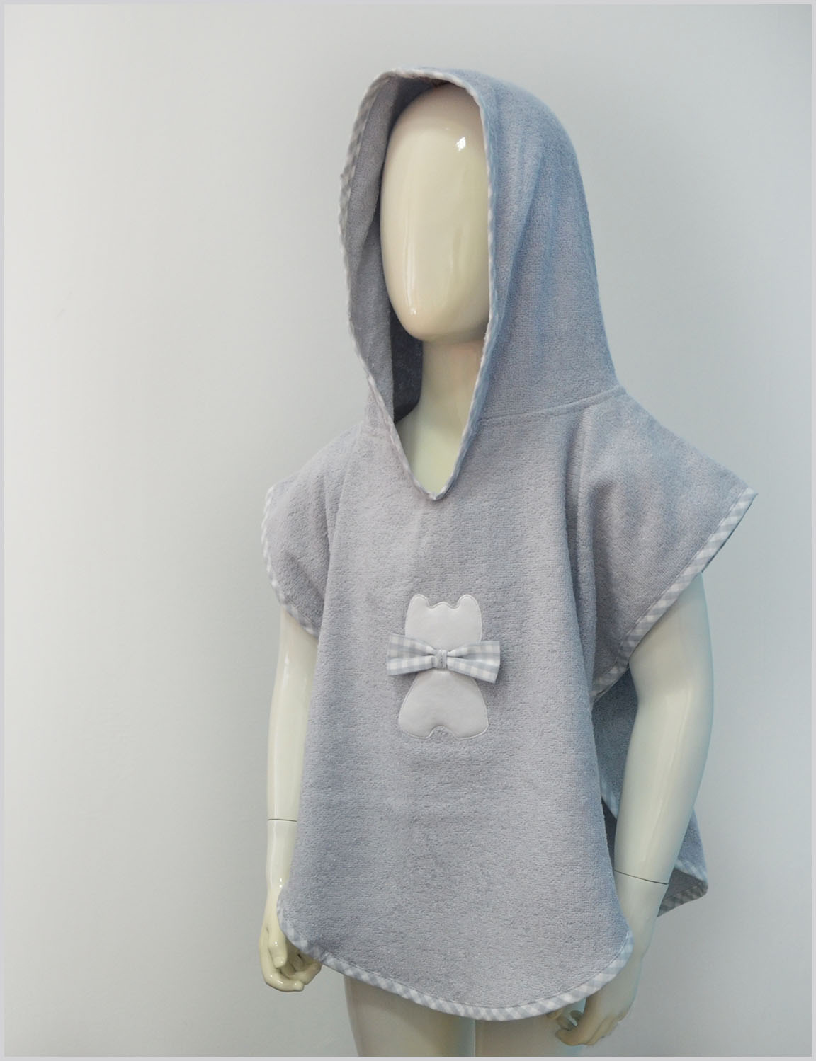 Махрове дитяче пончо дуже зручне і практичне у використанні. Воно м'яке і приємне до тіла. Складається з 100% бавовни, яка відмінно вбирає вологу та швидко сохне. Гарний і оригінальний дизайн підніме настрій Вам та вашій дитині.