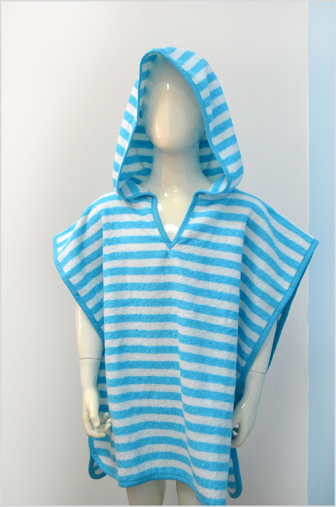 Пончо махрове дитяче "Смужка біло-блакитна" 70х70см 147080