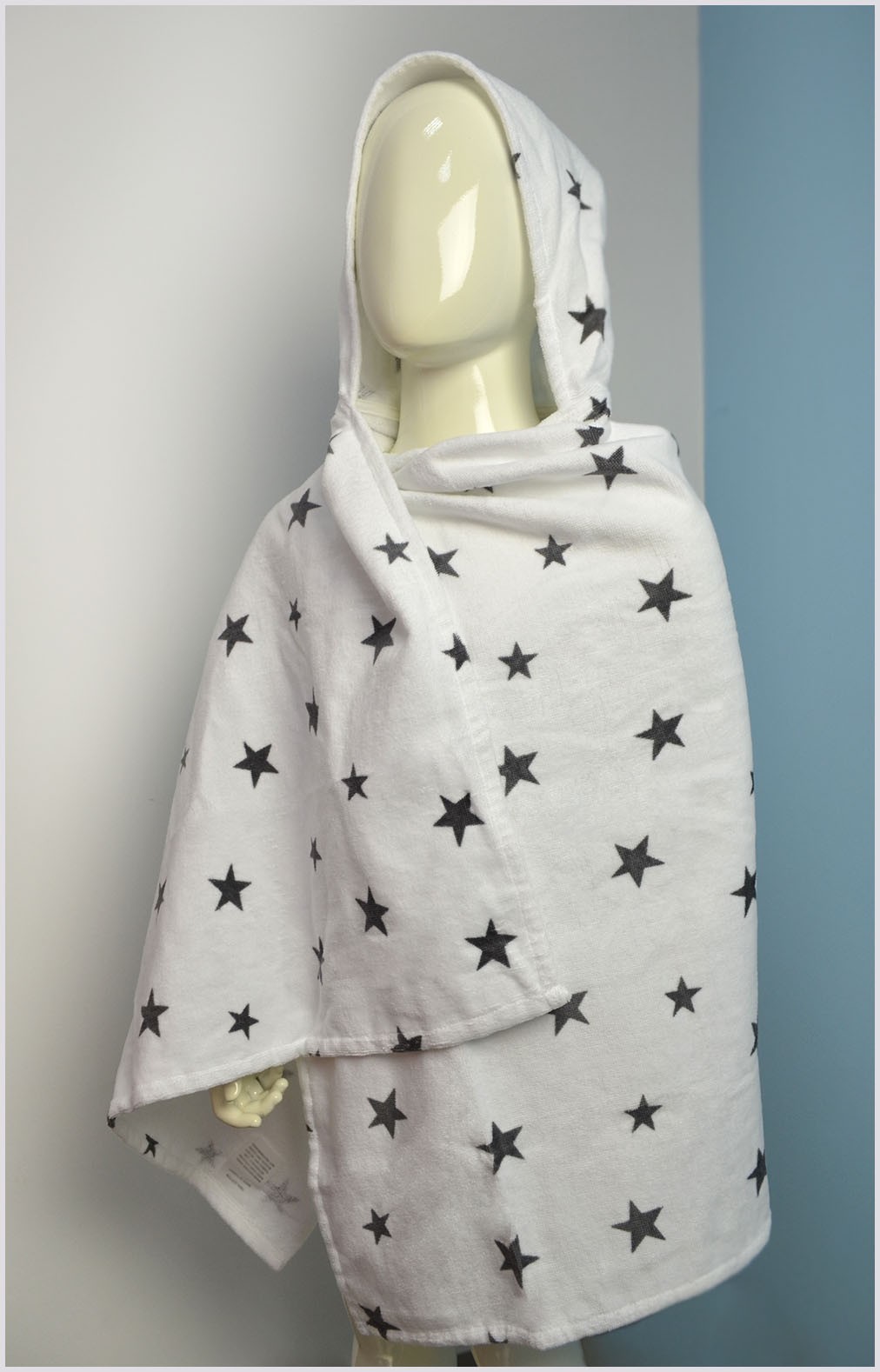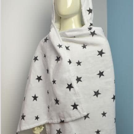 Пончо велюрове дитяче "Чорні зірочки на білому тлі" 130х70см 147164