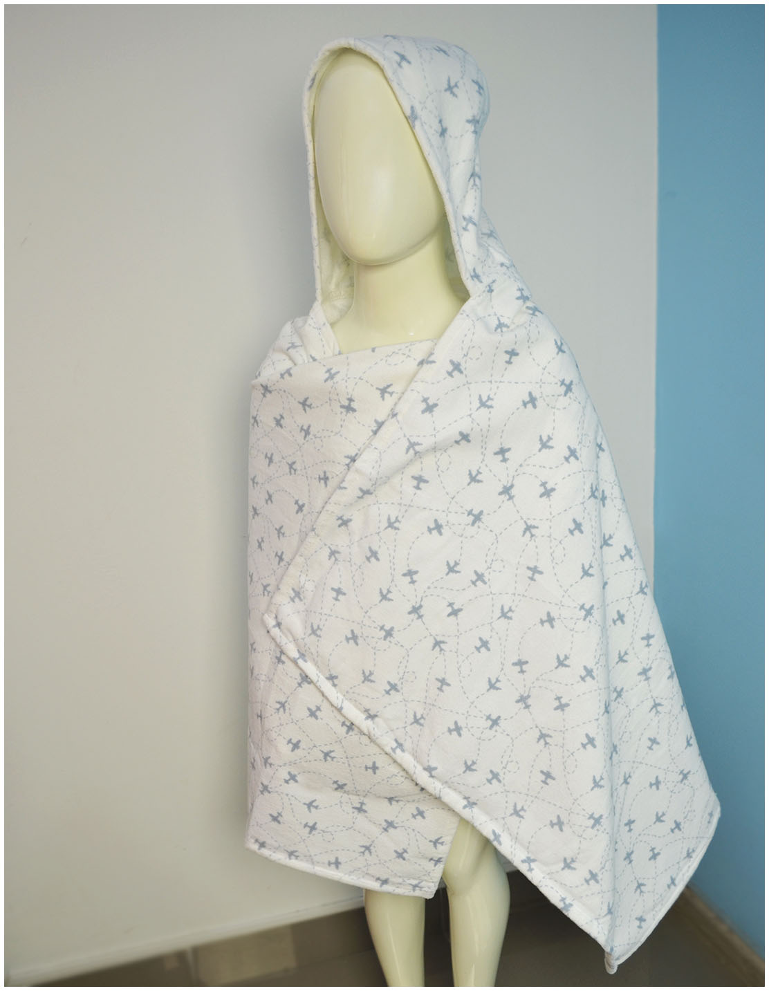 Пончо велюрове дитяче "Літачок сірий" 130х70см 147166