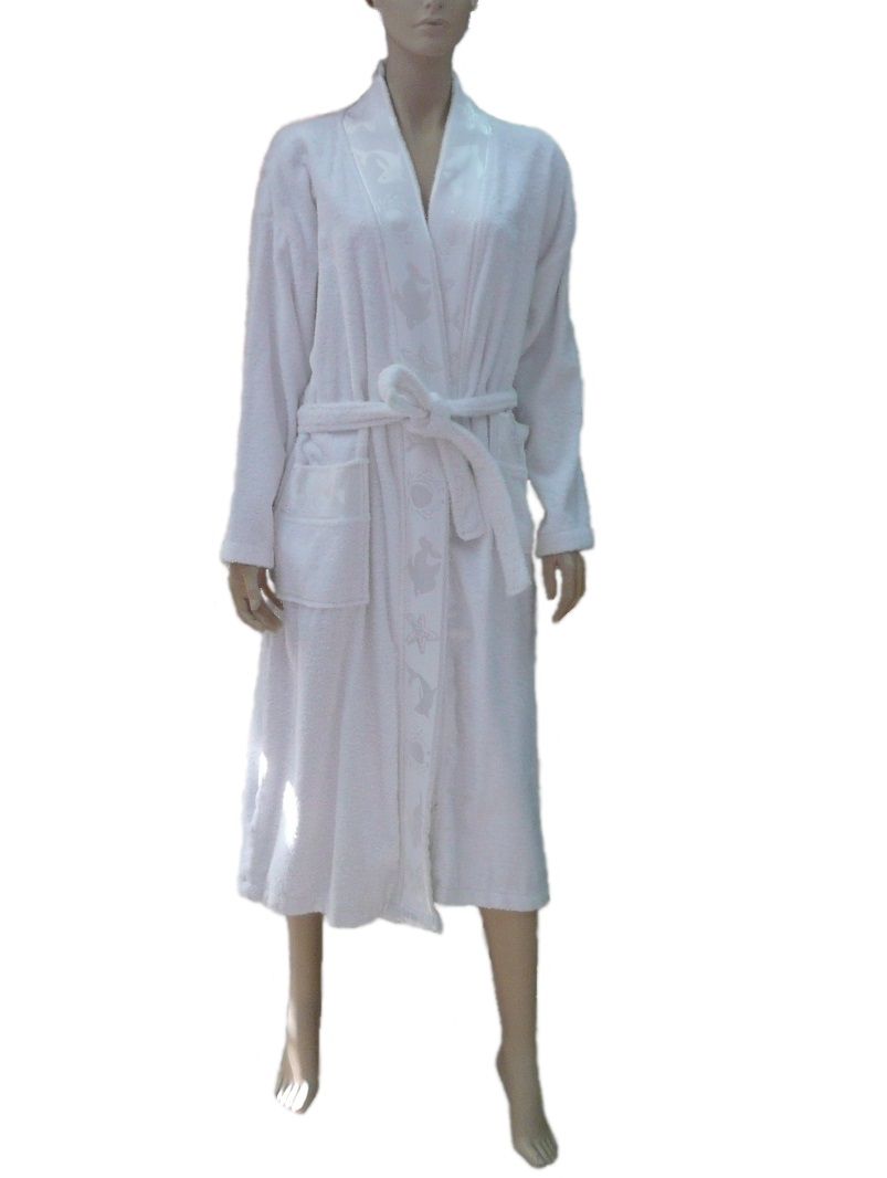 Халат махровий з жаккардовим коміром "Дельфіни". В наявності є різні кольори та розміри. Можно підібрати рушник з цієї ж серії. Країна виробник: Туреччина. Торгова марка: Home Line. Щільність: 340 гр.м.кв.