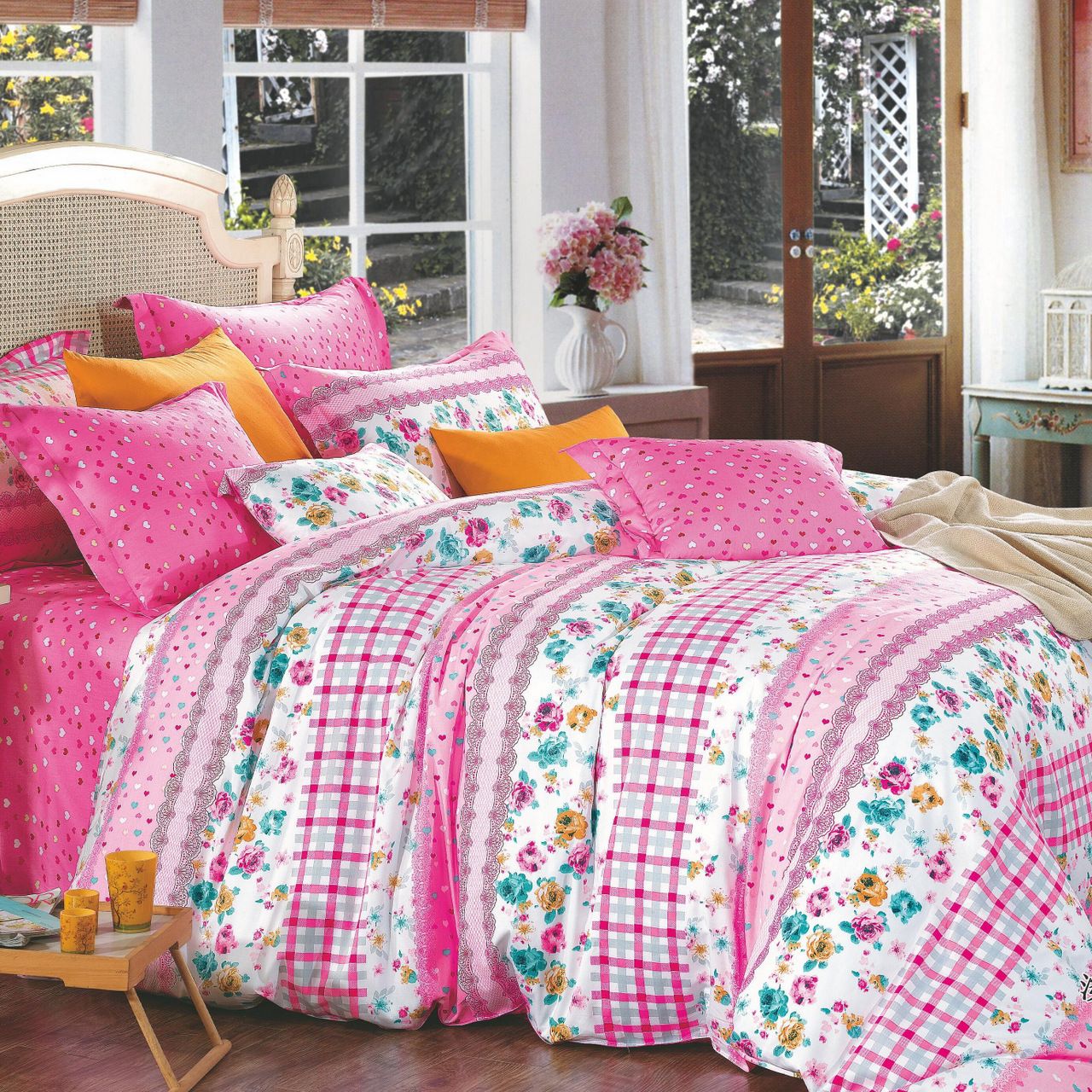 Постільна білизна торгової марки Home line. Виготовлена з сатину з різноманітними набивними малюнками. Євро розмір: підковдра 200х220 см - 2 шт., простирадло 220х230 см - 1 шт., наволочка 50х70 (+ 4.5) см - 2 шт. Упаковка: ПВХ.
