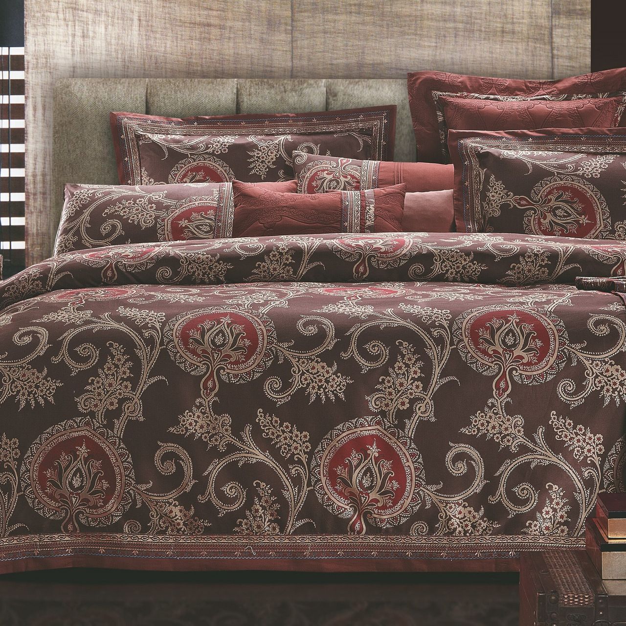 Постільна білизна торгової марки Home line. Виготовлена з сатину ЛЮКС - високоякісної бавовняної тканини з вишуканим набивним малюнком. Сатин ЛЮКС характеризується великою кількістю переплетень ниток, що утворюють гладеньку, дуже щільну поверхню, м'яку і шовковисту на дотик, тканина має стійке фарбування, зберігає відмінний зовнішній вигляд на довгі роки. Склад: 100% бавовна. Півтораспальний розмір: підковдра 160х220 см - 1 шт., простирадло 160х240 см - 1 шт. , наволочка 50х70 (+ 4.5) см - 2 шт. Упаковка: подарункові коробка і пакет.