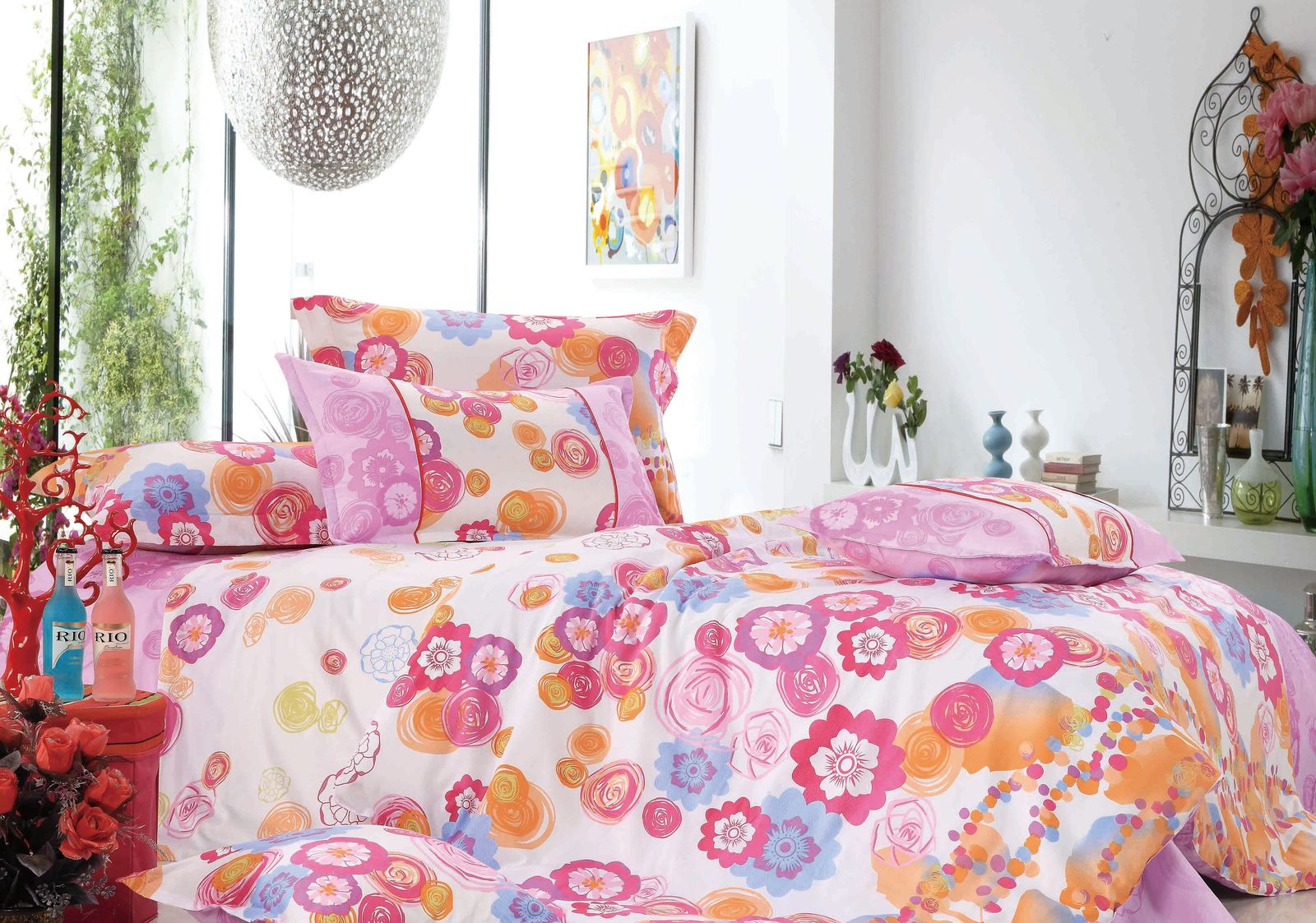 Постільна білизна торгової марки Home line. Виготовлена з сатину з різноманітними набивними малюнками. Склад: 100% бавовна. Сімейний розмір: підковдра 160х220 см - 2 шт., простирадло 220х230 см - 1 шт., наволочка 50х70 (+ 4.5) см - 2 шт. Упаковка: ПВХ.