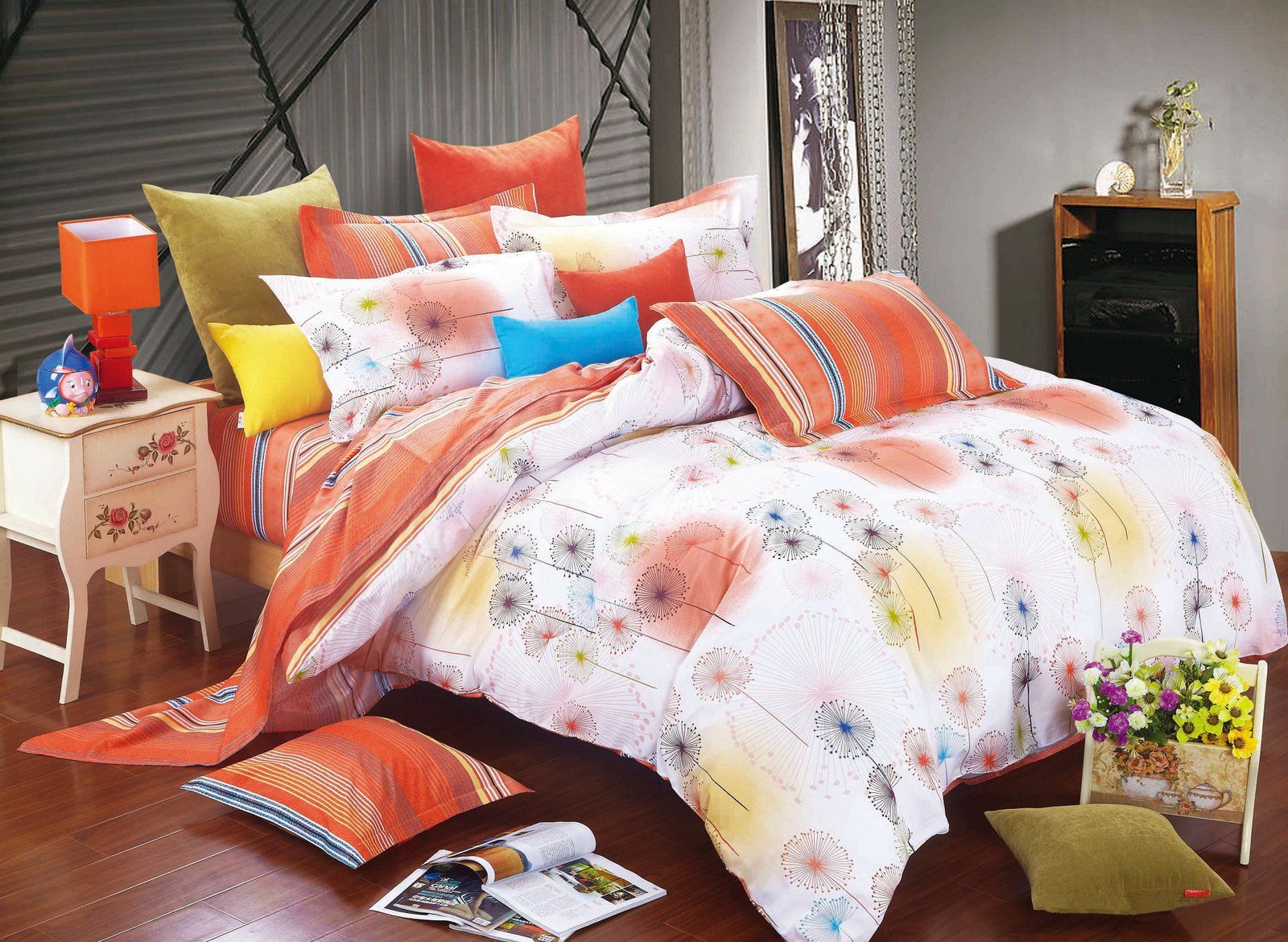 Постільна білизна виготовлена з сатину 100% бавовна з гладенькою і дуже щільною поверхнею, м'якою і шовковистою на дотик. На тканину нанесені сучасні яскраві малюнки. Комплекти запропоновані у півтораспальному, євро та сімейному розмірах.