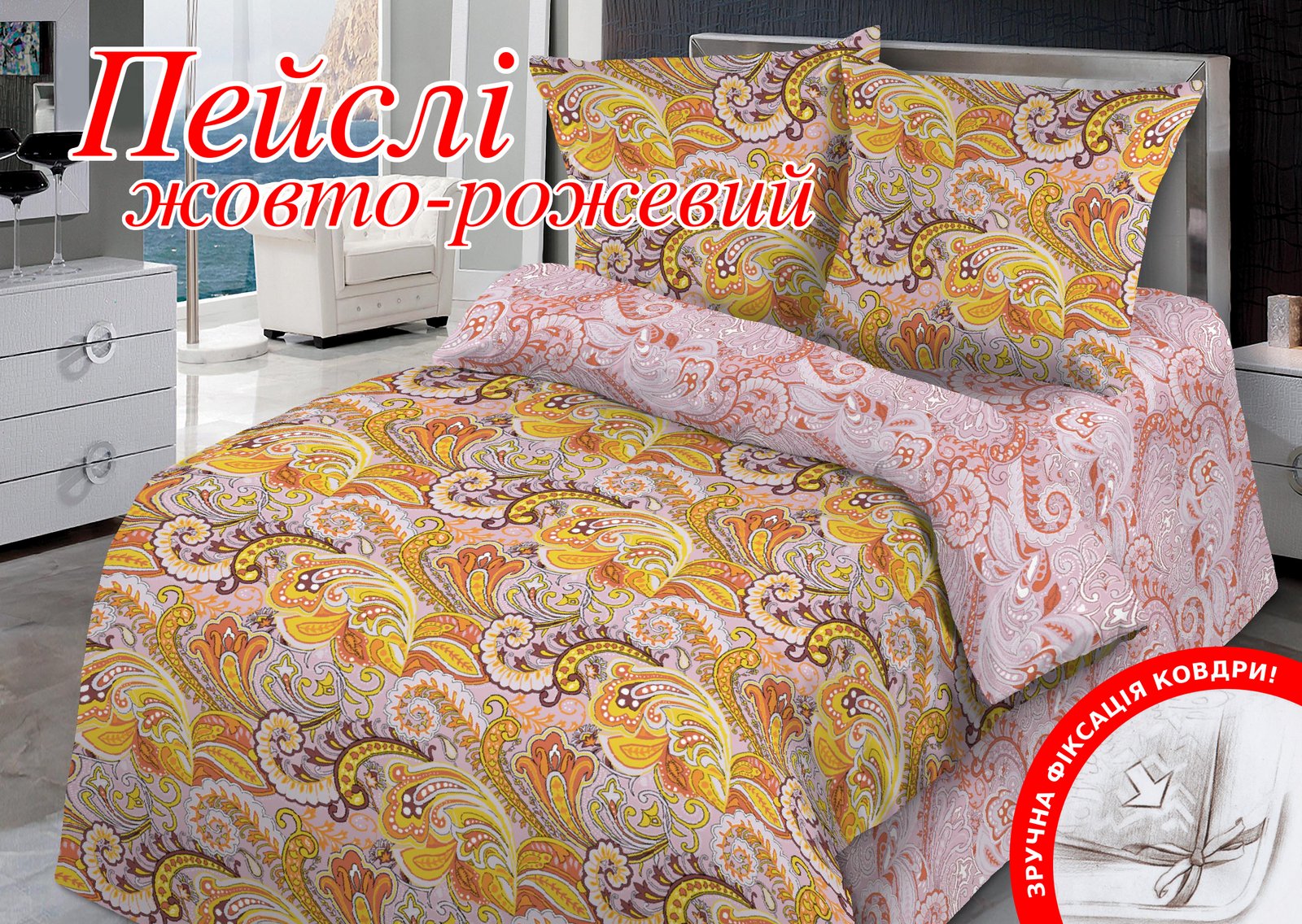 Сімейний комплект постільної білизни Home Line "Пейслі" (жовто-рожевий) 113136