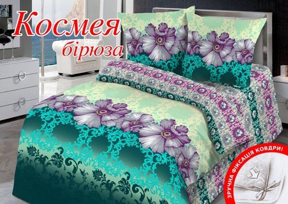 Сімейний комплект постільної білизни Home Line "Космея" (бірюзовий) 113152