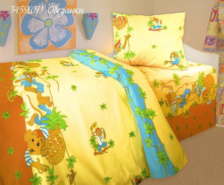 Дитячий комплект постільної білизни Home Line "Мавпочки" (жовтий, помаранчевий, синій) 113348