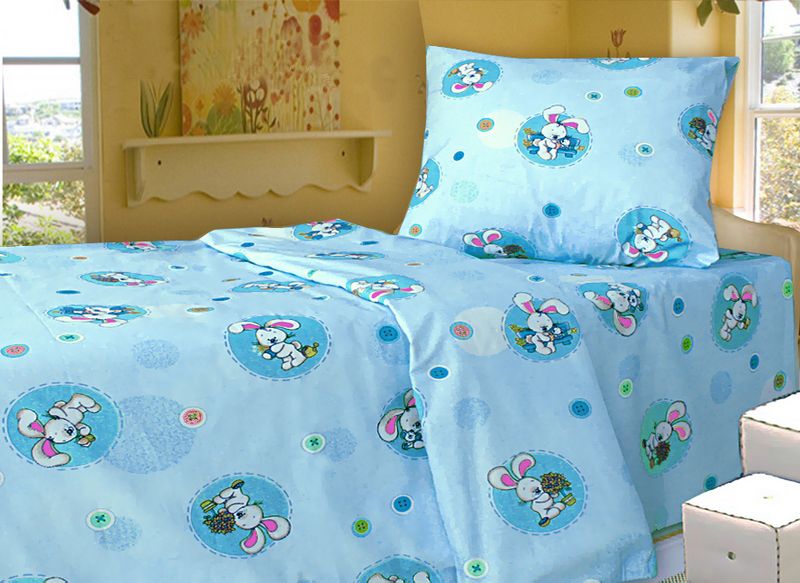 Комплект постільної білизни дитячий в пакеті ПВХ. Простирадло 100х150 см, підковдра 105х145см, наволочка 40х60см - 1шт. Торгова марка: Home Line. Матеріал - бязь 100% бавовна, щільність 136 г/м2.