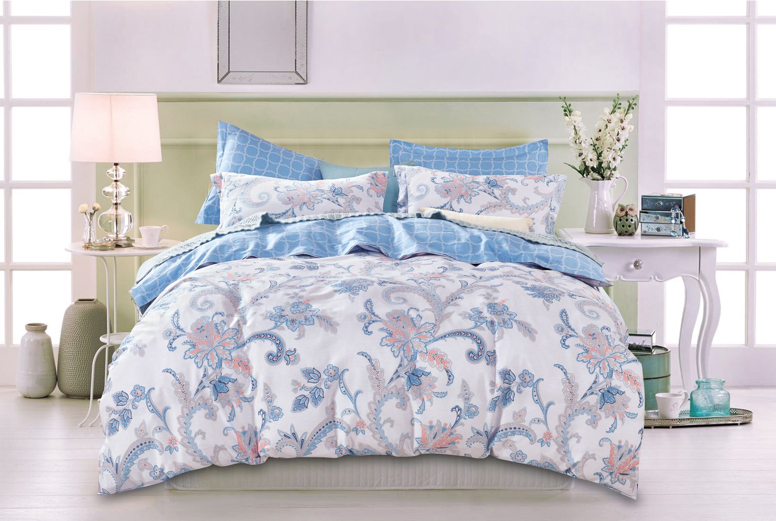 Постільна білизна торгової марки Home line. Виготовлена з сатину з різноманітними набивними малюнками. Сімейний розмір: підковдра 160х220 см - 2 шт., простирадло 220х230 см - 1 шт., наволочка 50х70 (+ 4.5) см - 2 шт. Упаковка: ПВХ.