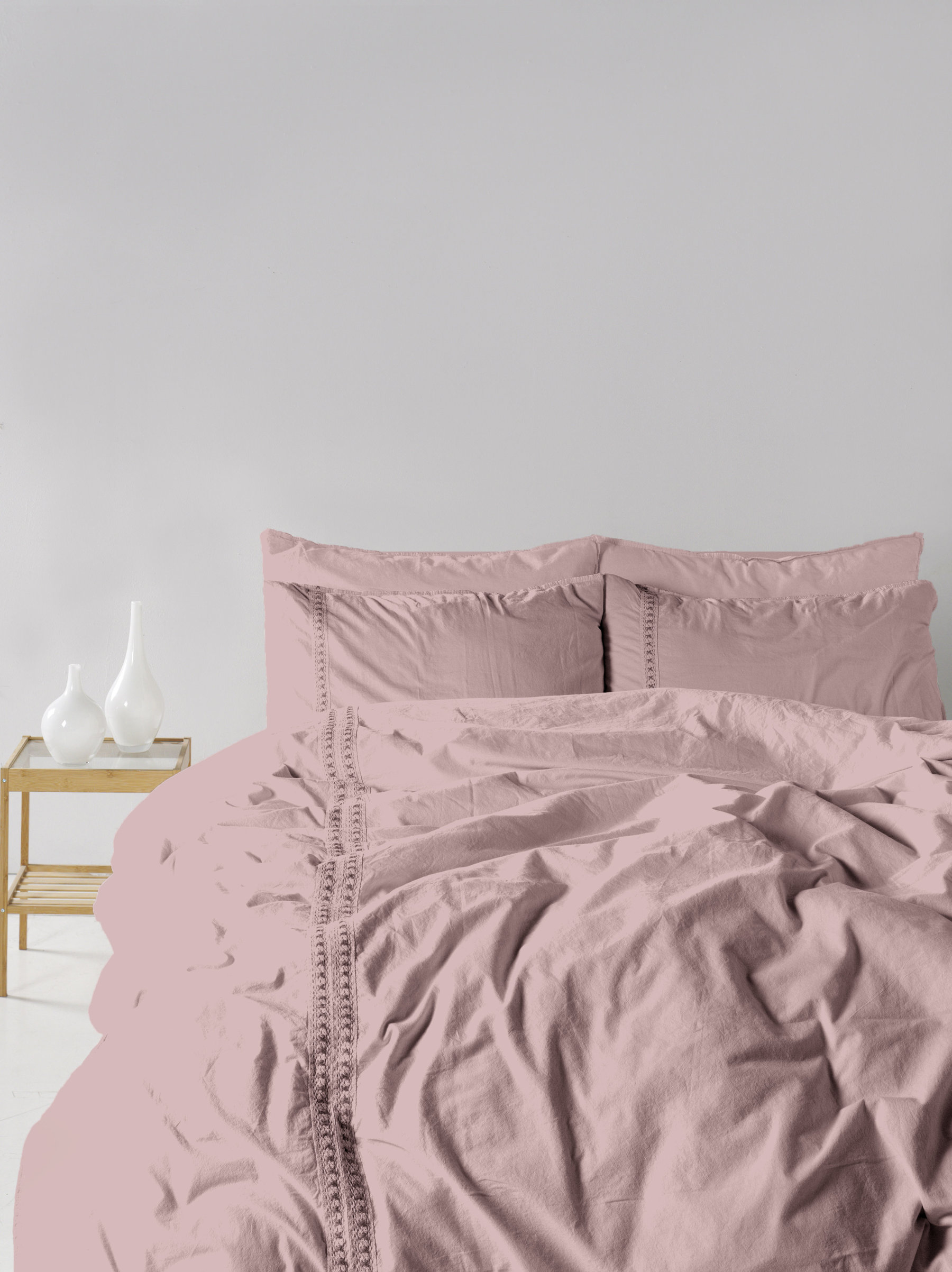 Євро комплект постільної білизни Limasso "Tissue lace palemauve" з мереживом (ліловий) 147902