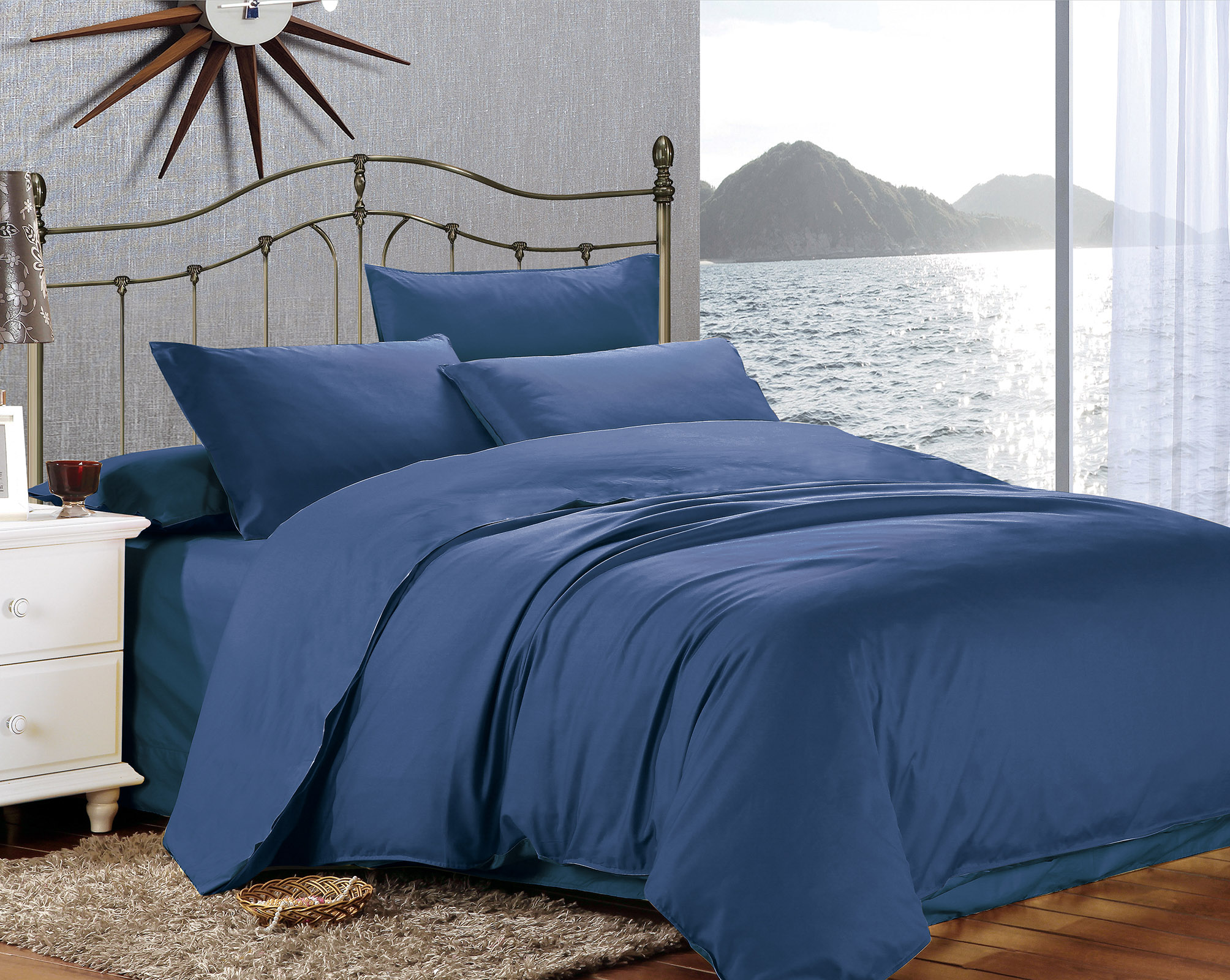 Сімейний комплект постільної білизни Home Line "Сатин Люкс" (темно-синій) 155274