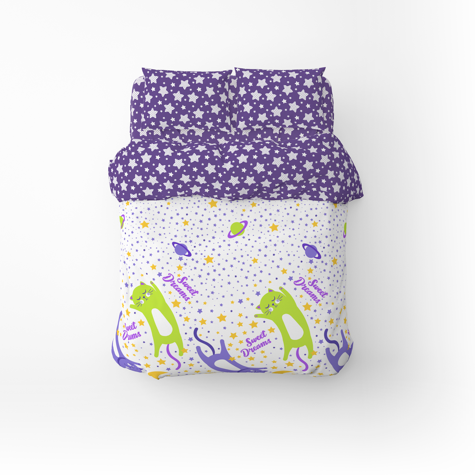 Дитячий комплект постільної білизни Home Line "Коти та зорі в горох" (фіолетовий) 162245