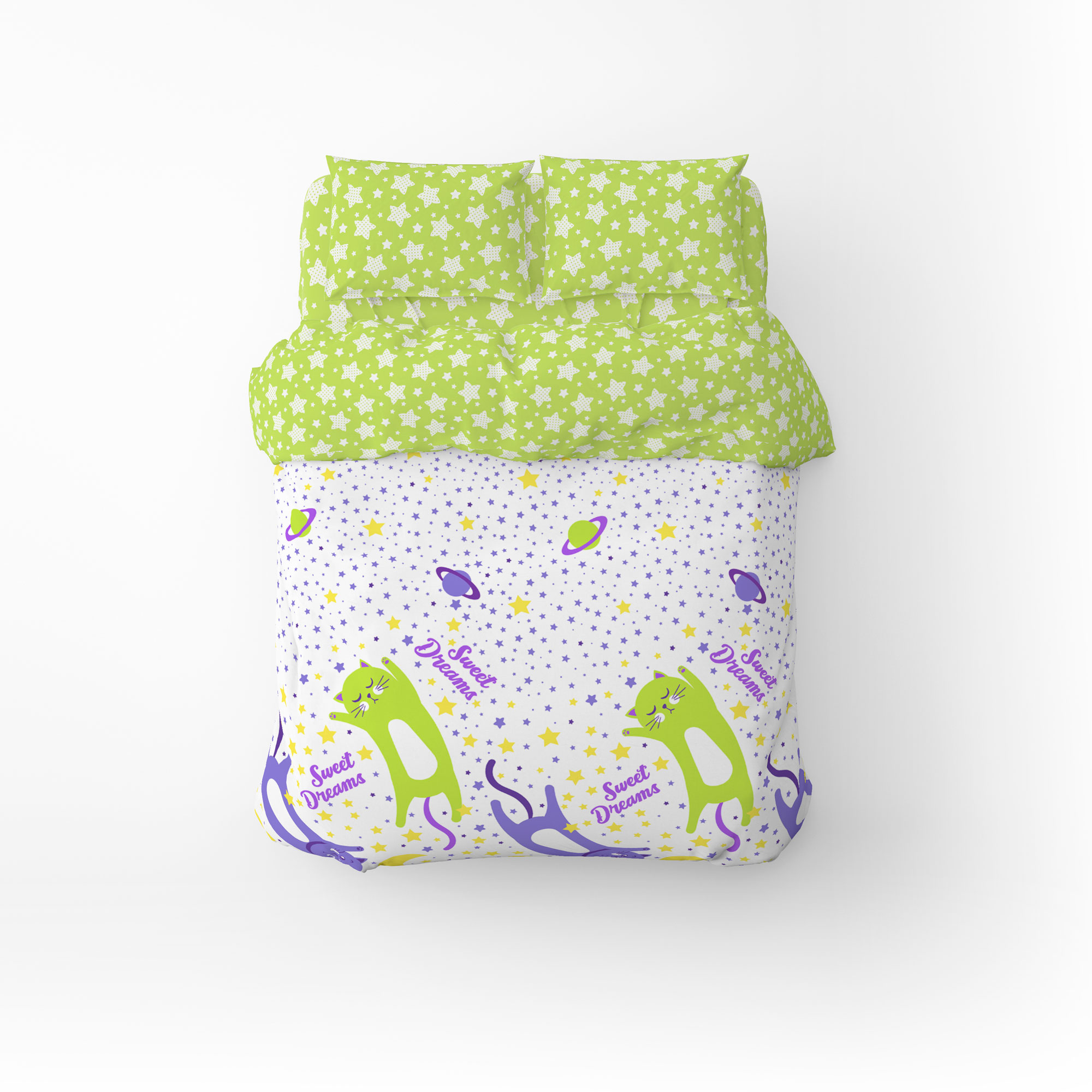 Дитячий комплект постільної білизни Home Line "Коти та зорі в горох" (фіолетовий, лайм) 162246