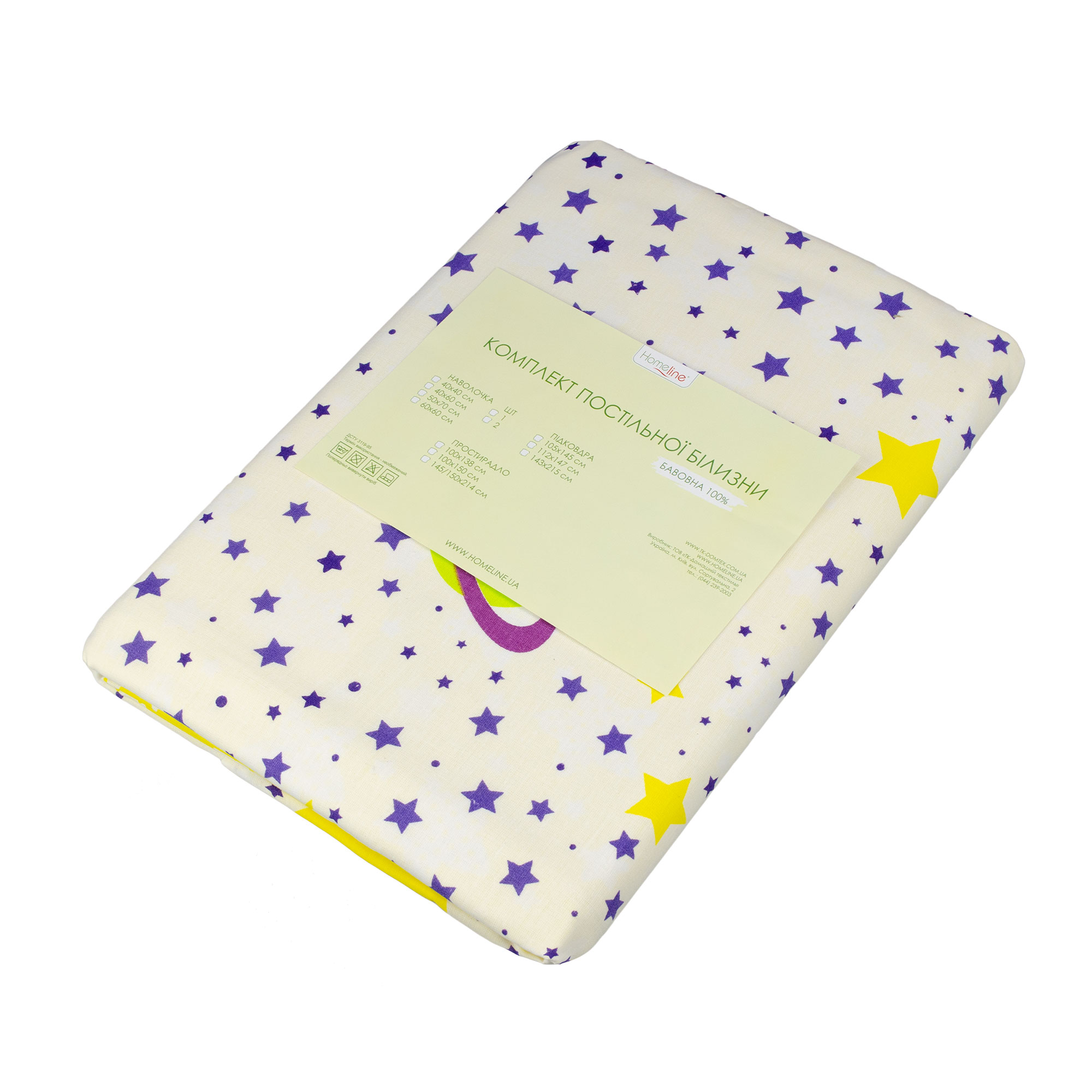 Дитячий комплект постільної білизни Home Line "Коти фіолетово-лаймові, Зорі в горох лаймові" 163814