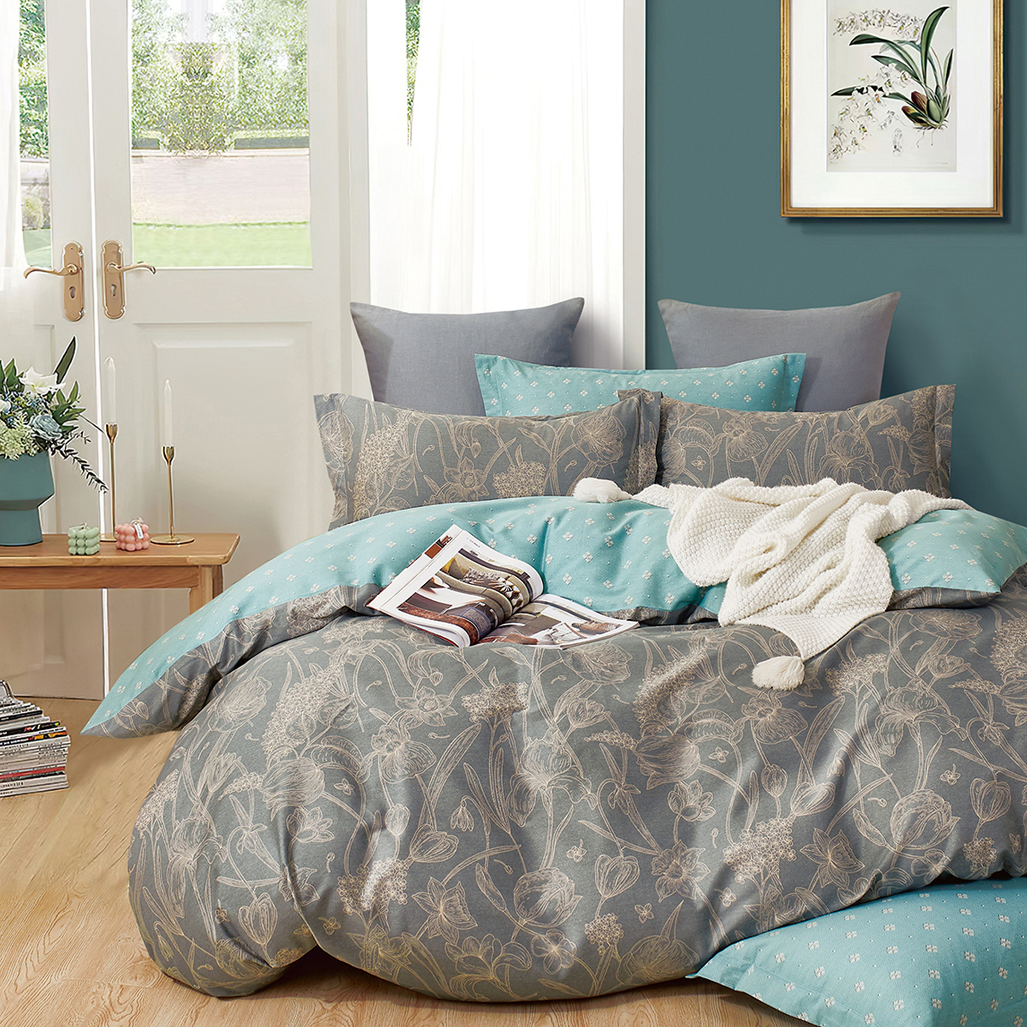 Євро комплект постільної білизни Home Line "КВІТИ ПІВДЕННОГО МІСТА" ( темно-сірий) 171716