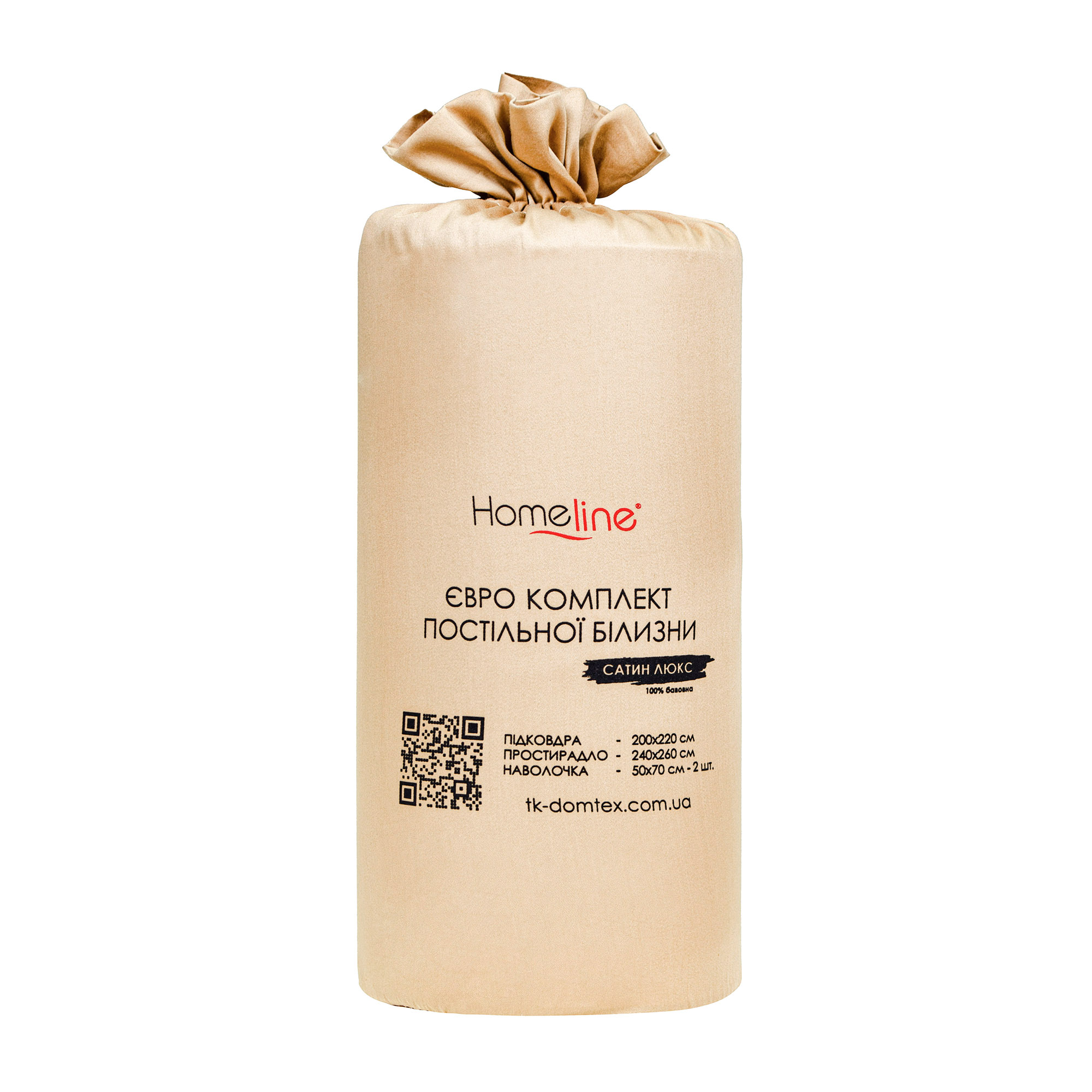 Євро комплект постільної білизни Home Line "Сатин Люкс" (пісочний) 176560