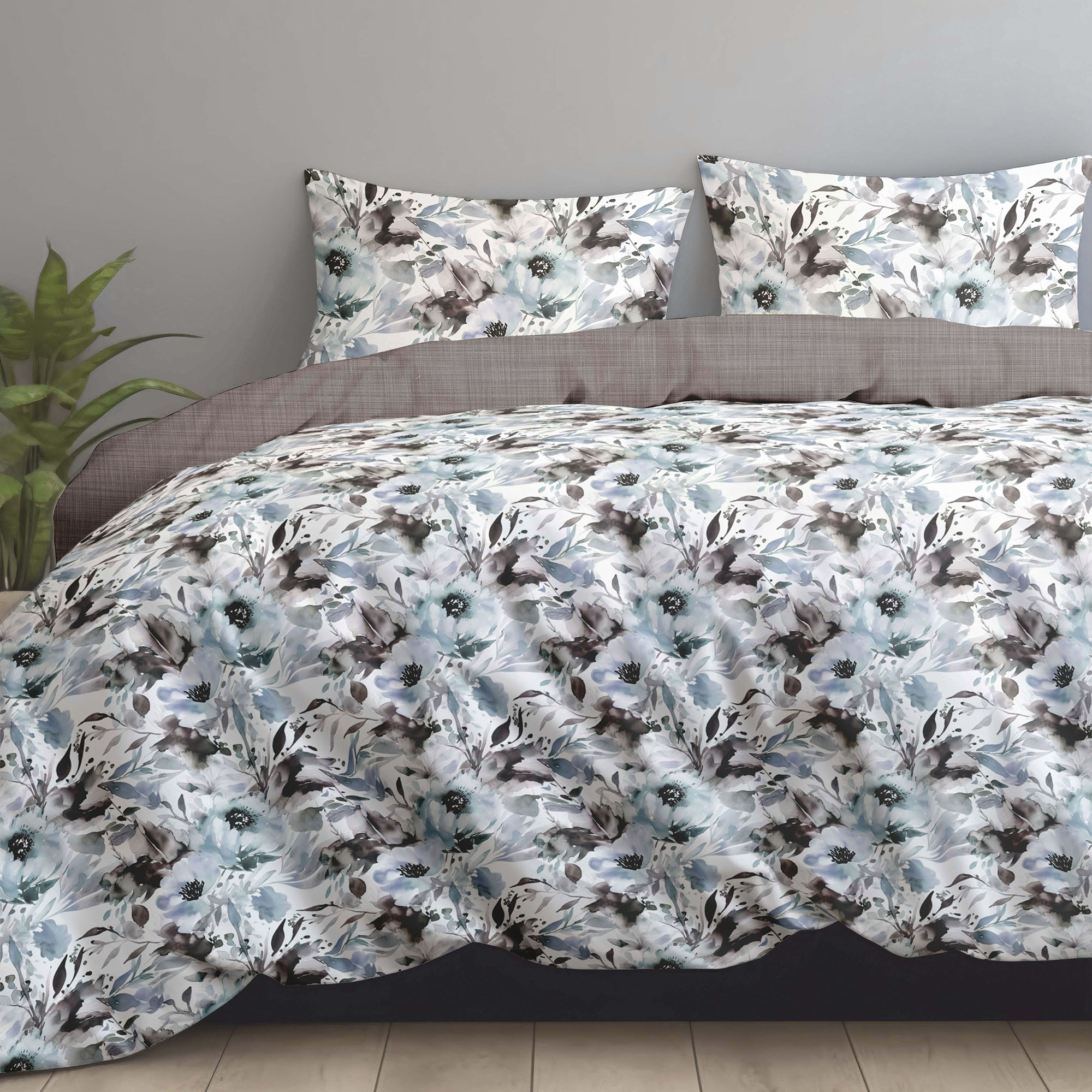 Комплект постільної білизни Home Line «Акварельні квіти» виконаний із бавовняного сатин-твілу. Тканина м’яка, міцна та приємна на дотик, має легкий шовковистий блиск. Матеріал довго зберігає форму та насиченість кольорів. До комплекту входить: підковдра 200х220 см – 1 шт., простирадло 230х260 см – 1 шт., наволочки 50х70 (+4,5 см) – 2 шт. Упаковка – ПВХ.