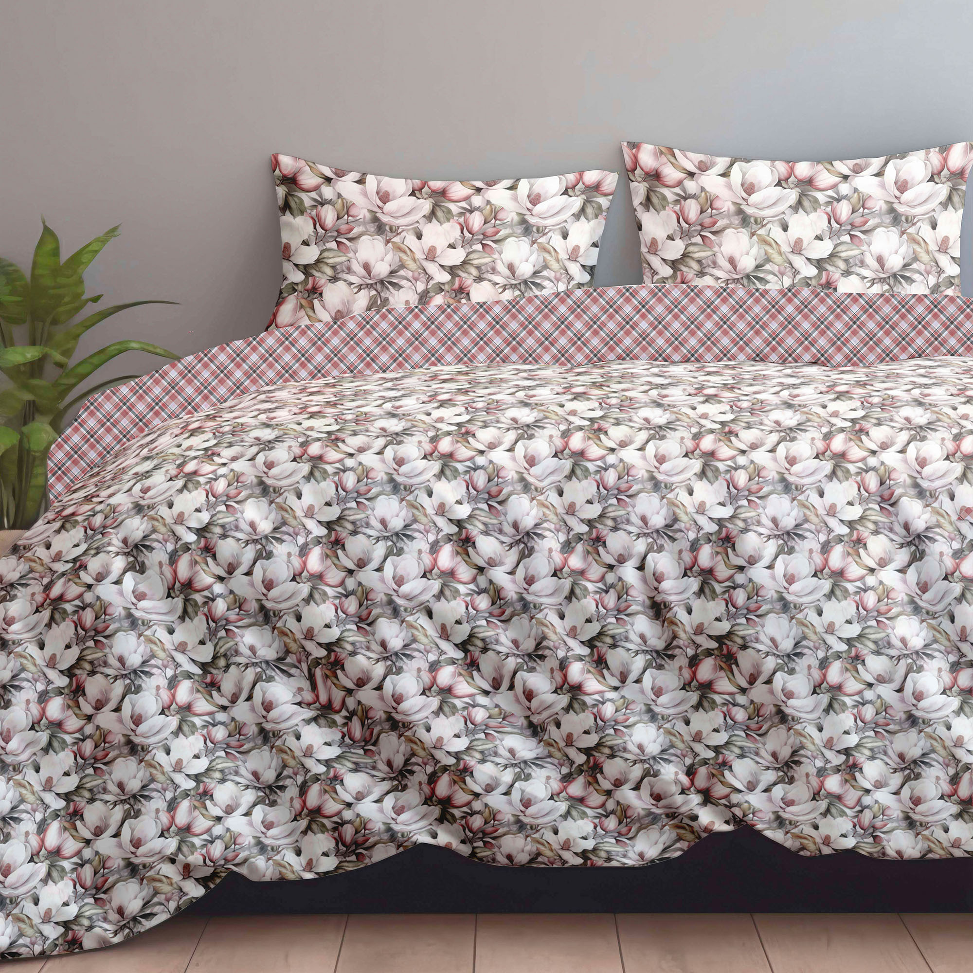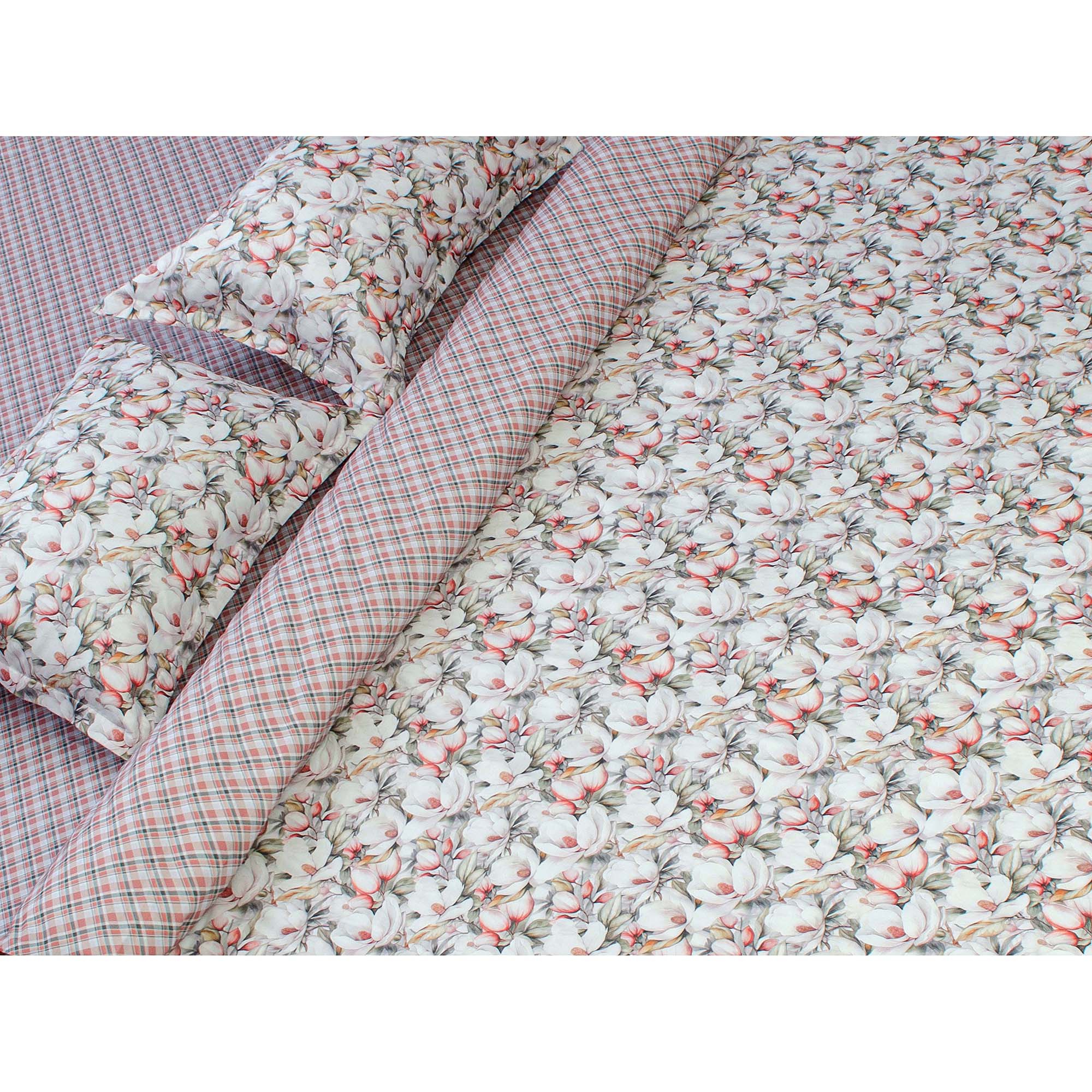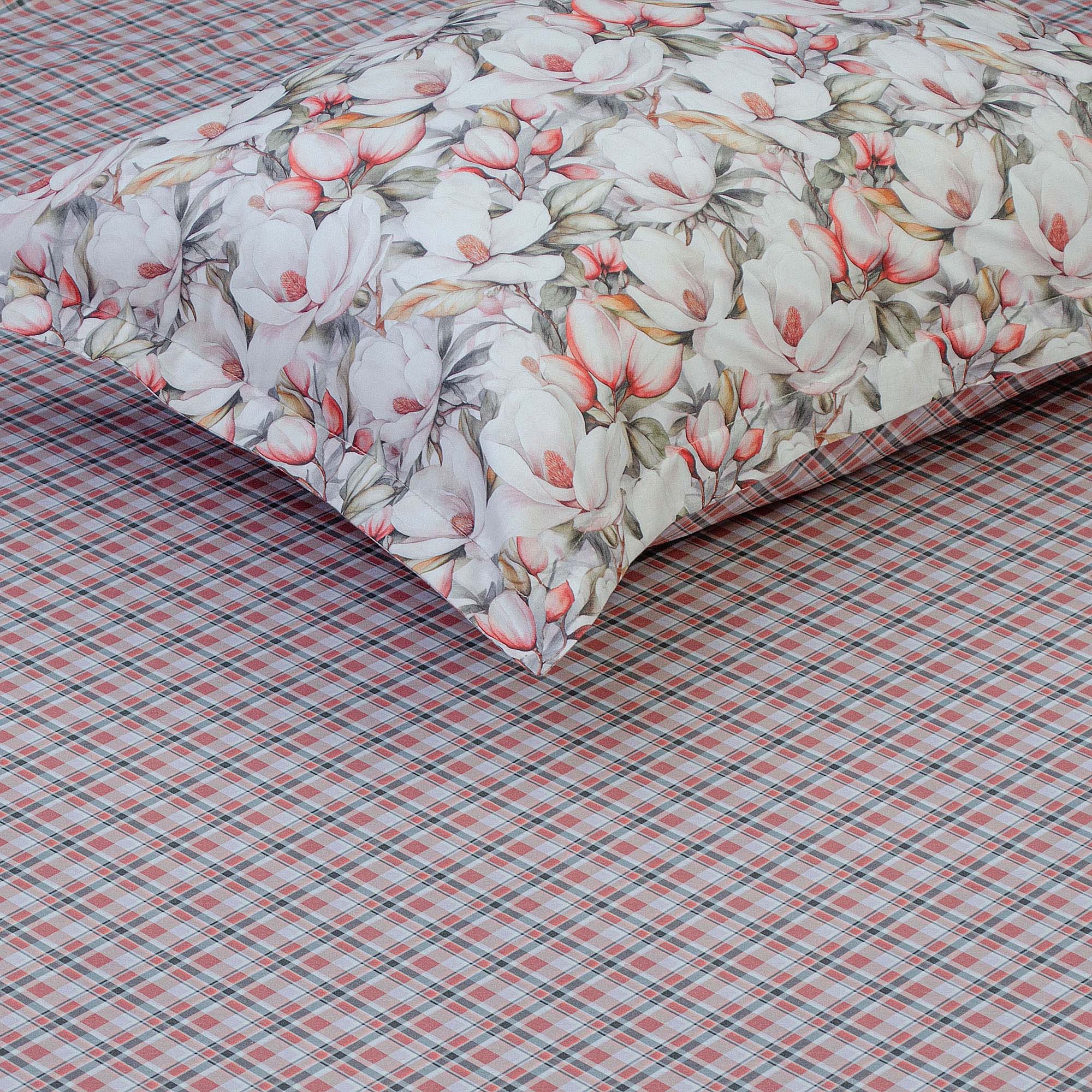 Комплект постільної білизни Home Line «Магнолія» виконаний із бавовняного сатин-твілу. Тканина має гладку поверхню, приємна до тіла та добре пропускає повітря. Матеріал зберігає форму і насиченість кольору навіть після багаторазового прання. До комплекту входить: підковдра 200х220 см – 1 шт., простирадло 230х260 см – 1 шт., наволочки 50х70 (+4,5 см) – 2 шт. Упаковка – ПВХ.