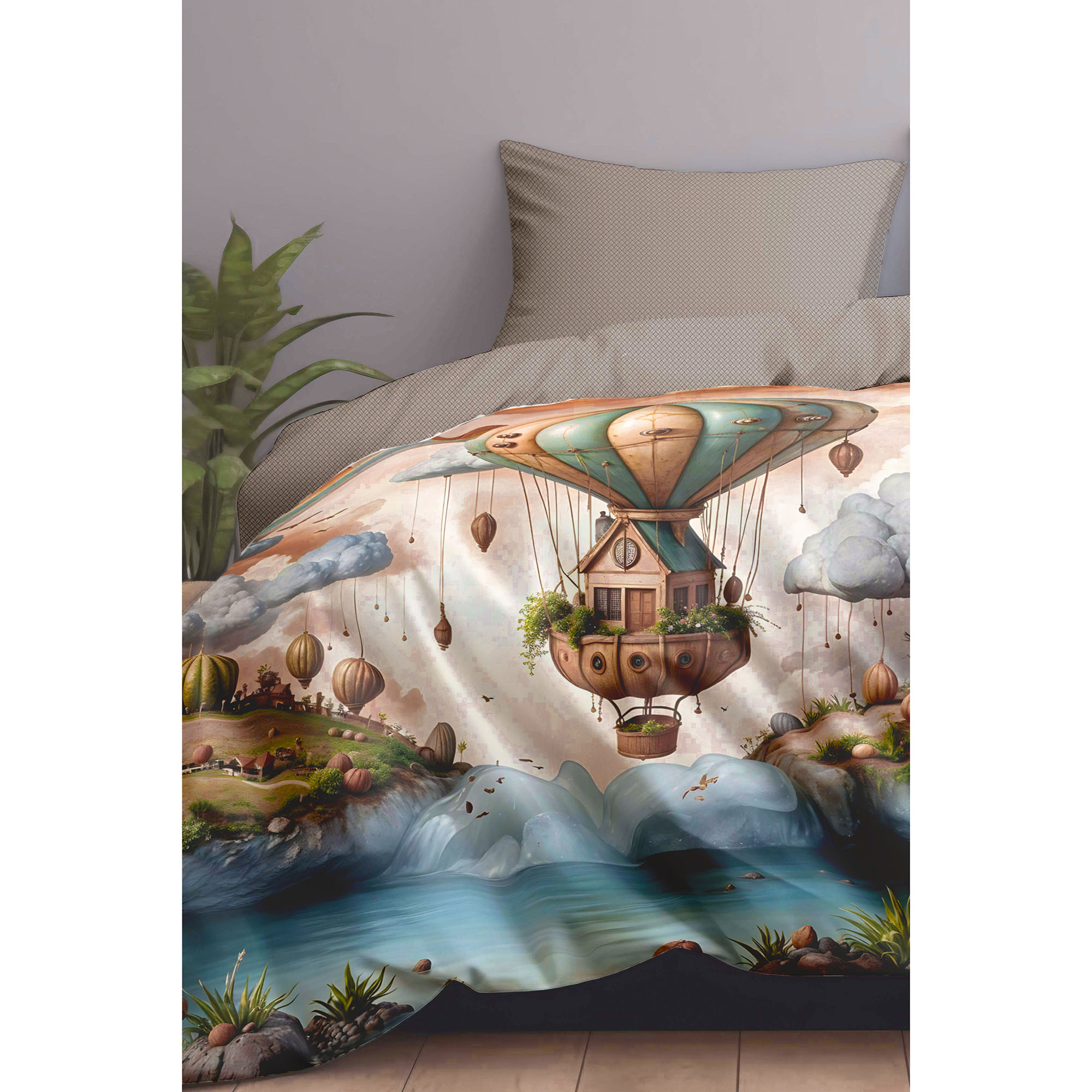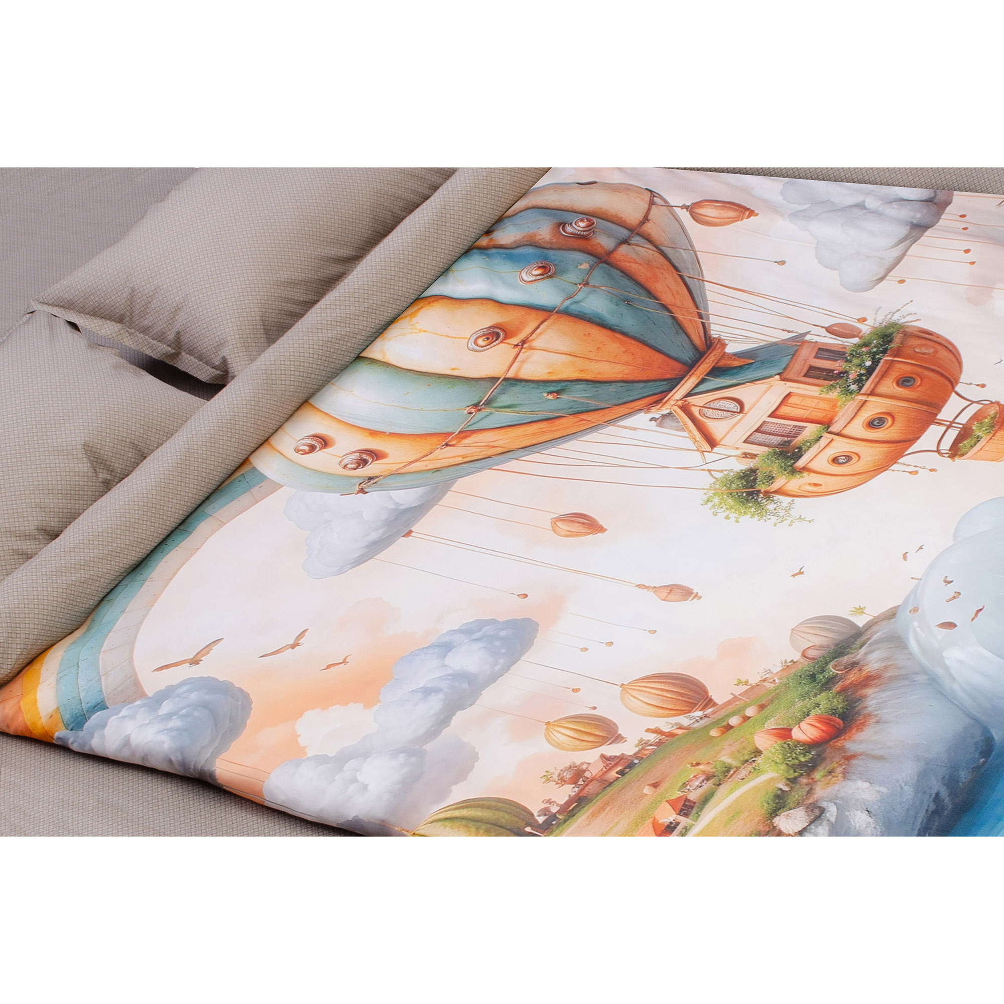 Комплект постільної білизни Home Line «Мрії мандрівника» виготовлений із сатин-твілу зі 100% бавовни. Тканина приємна на дотик, м’яка та добре пропускає повітря. Матеріал практичний і довго зберігає привабливий вигляд. До комплекту входить: підковдра 200?220 см – 1 шт., простирадло 230?260 см – 1 шт., наволочки 50?70 (+4,5 см) – 2 шт. Упаковка – ПВХ.