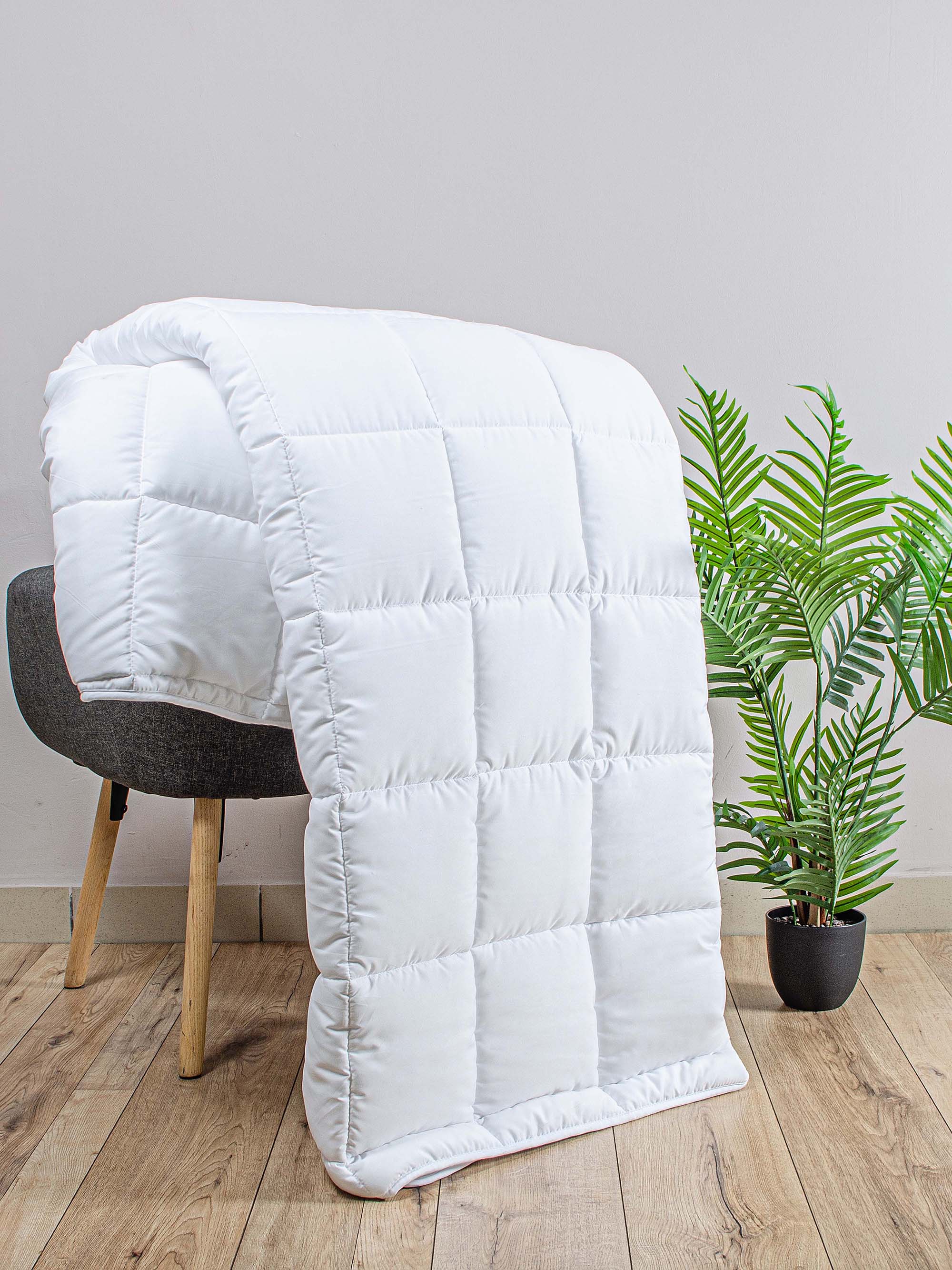 Штучний лебединий пух - це сучасний і практичний матеріал, який використовують в якості наповнювача для ковдр. Він легко очищається, не вбирає запахи, не злежується і тримає форму. Такий матеріал підходить людям, у яких є алергія на натуральні наповнювачі.