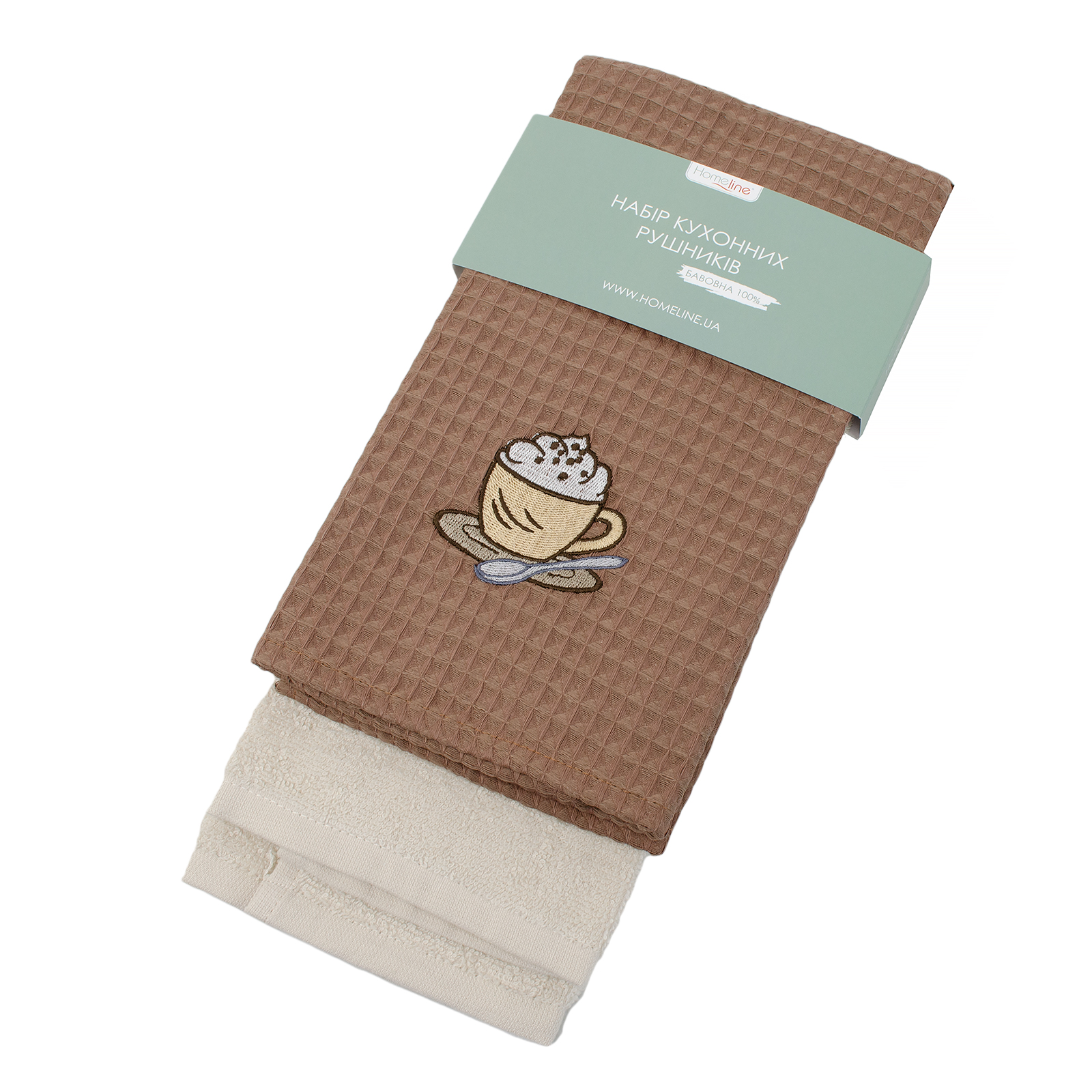 Набір кухонних рушників з гарним малюнком виготовлені з 100% бавовни. Вони порадують господиню не тільки оригінальним дизайном, але і відмінними експлуатаційними властивостями: добре поглинають вологу, м'які, легкі в догляді, довговічні. Набір з двох рушників Homeline (махрового 45х70 та вафельного 45х60 з вишивкою).