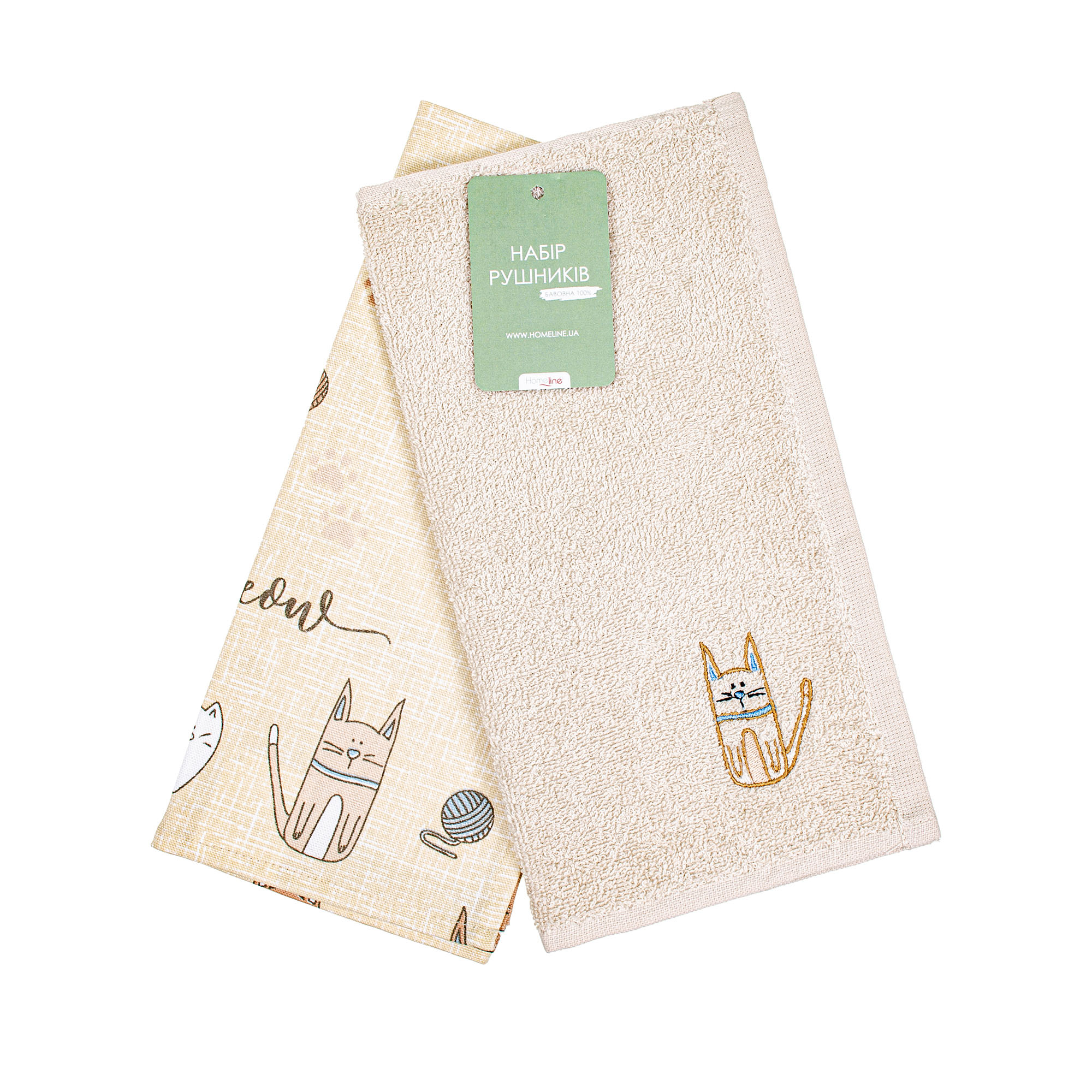 Набір кухонних рушників Home Line з вишивкою "Кіт на кухні" (пісочний) 40х60 напівпанама, 30х45 махр