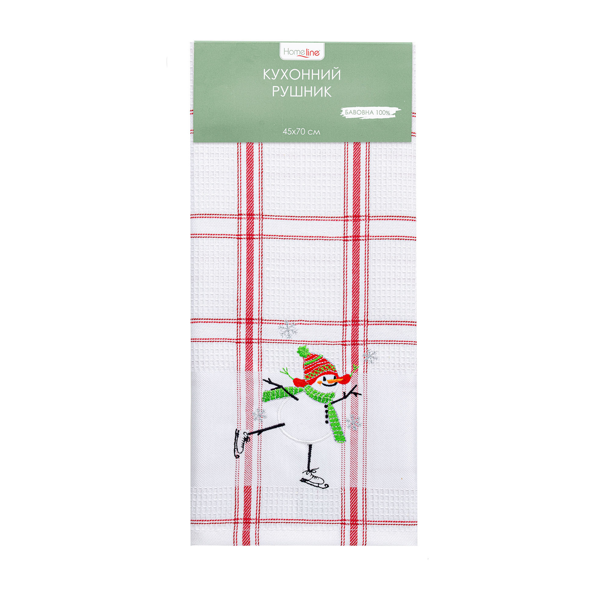 Рушник вафельний Home Line (смужка червона, з вишивкою сніговик) 45x70см 180061