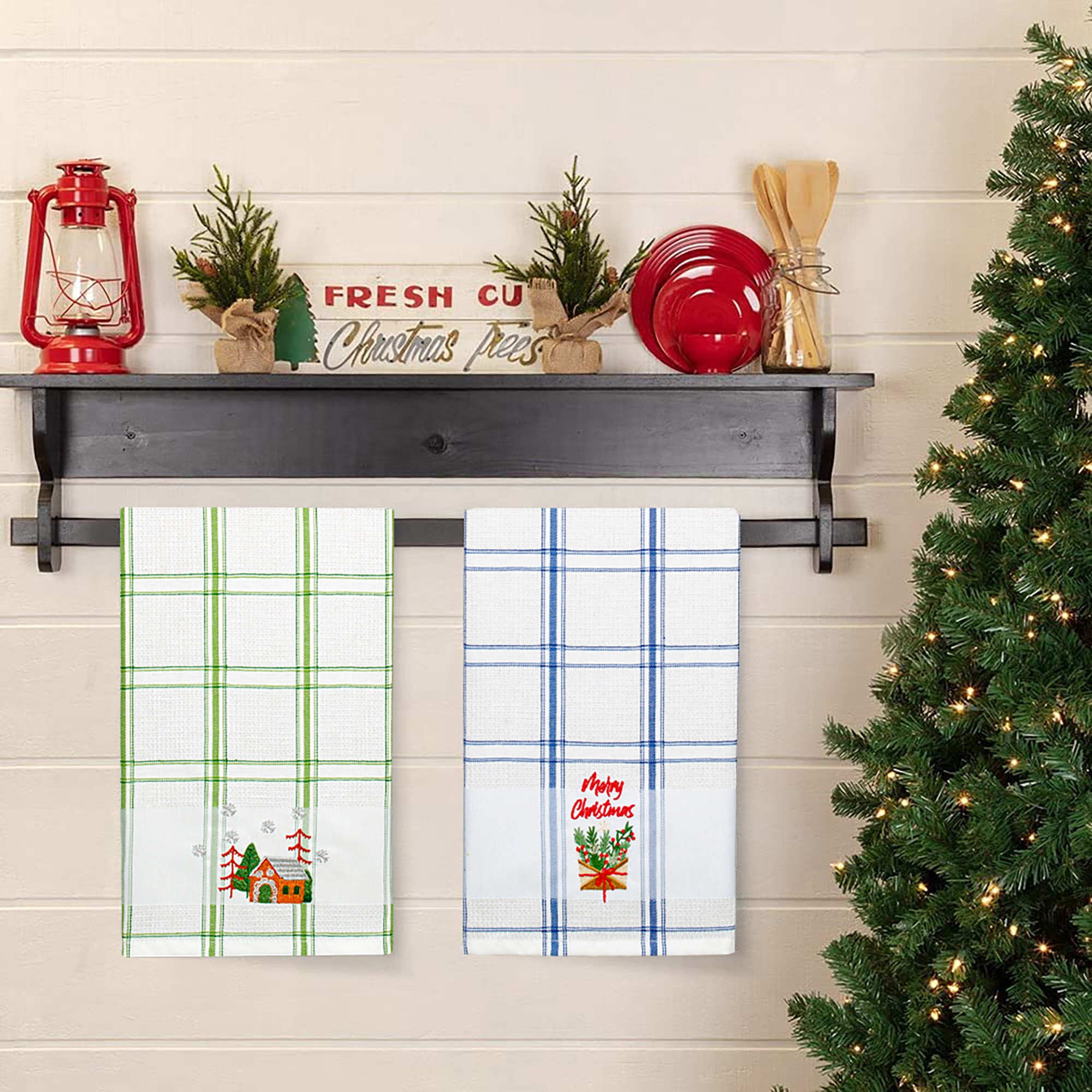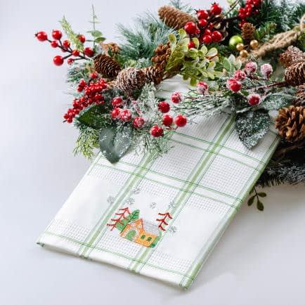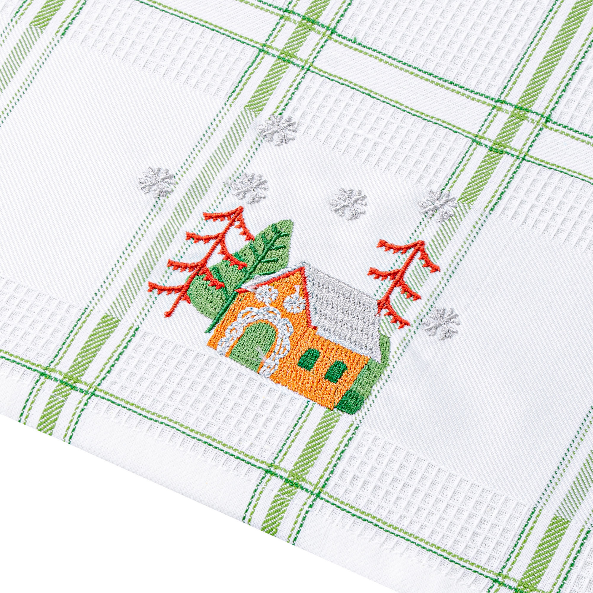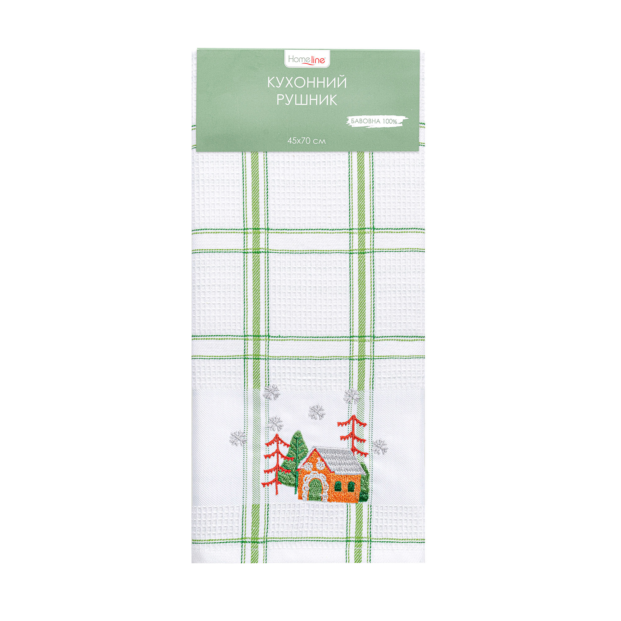 Рушник вафельний Home Line (смужка зелена, з вишивкою ліс) 45x70см 180064