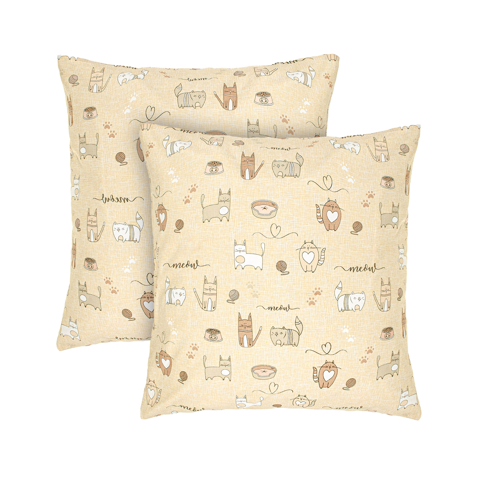 Наволочки бязеві (2шт.) "Котяча радість" (пісчано-рожевий) 70х70см 183284