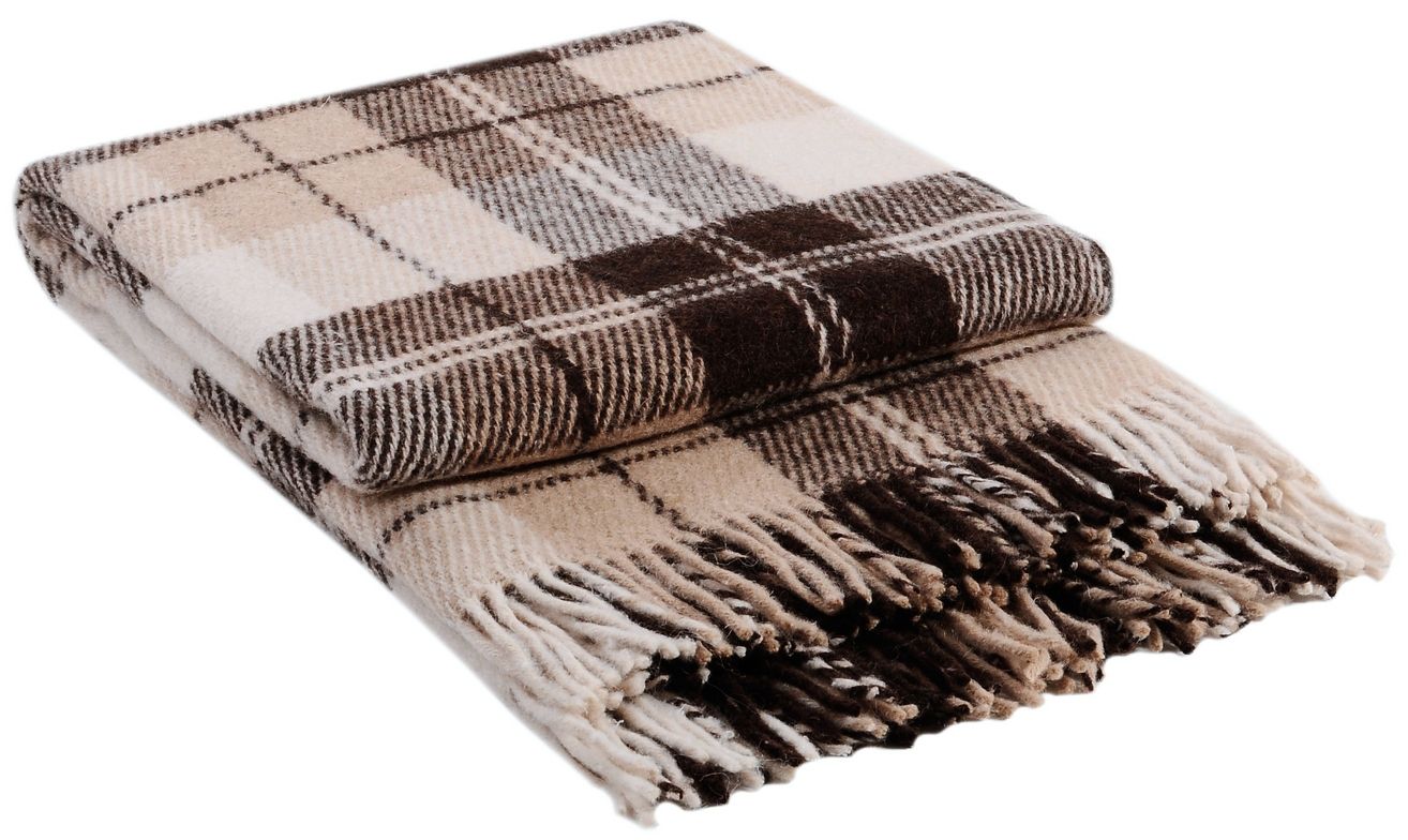Високоякісний ворсистий вовняний плед класичної текстури та малюнку в клітинку, упакований в сумку з ПВХ. Розмір: 140х200 см. Може використовуватися як плед і як ковдра. Також є наяний в інших кольорах і відтінках. Щільність: 390 г/кв.м. Виробництво: Україна