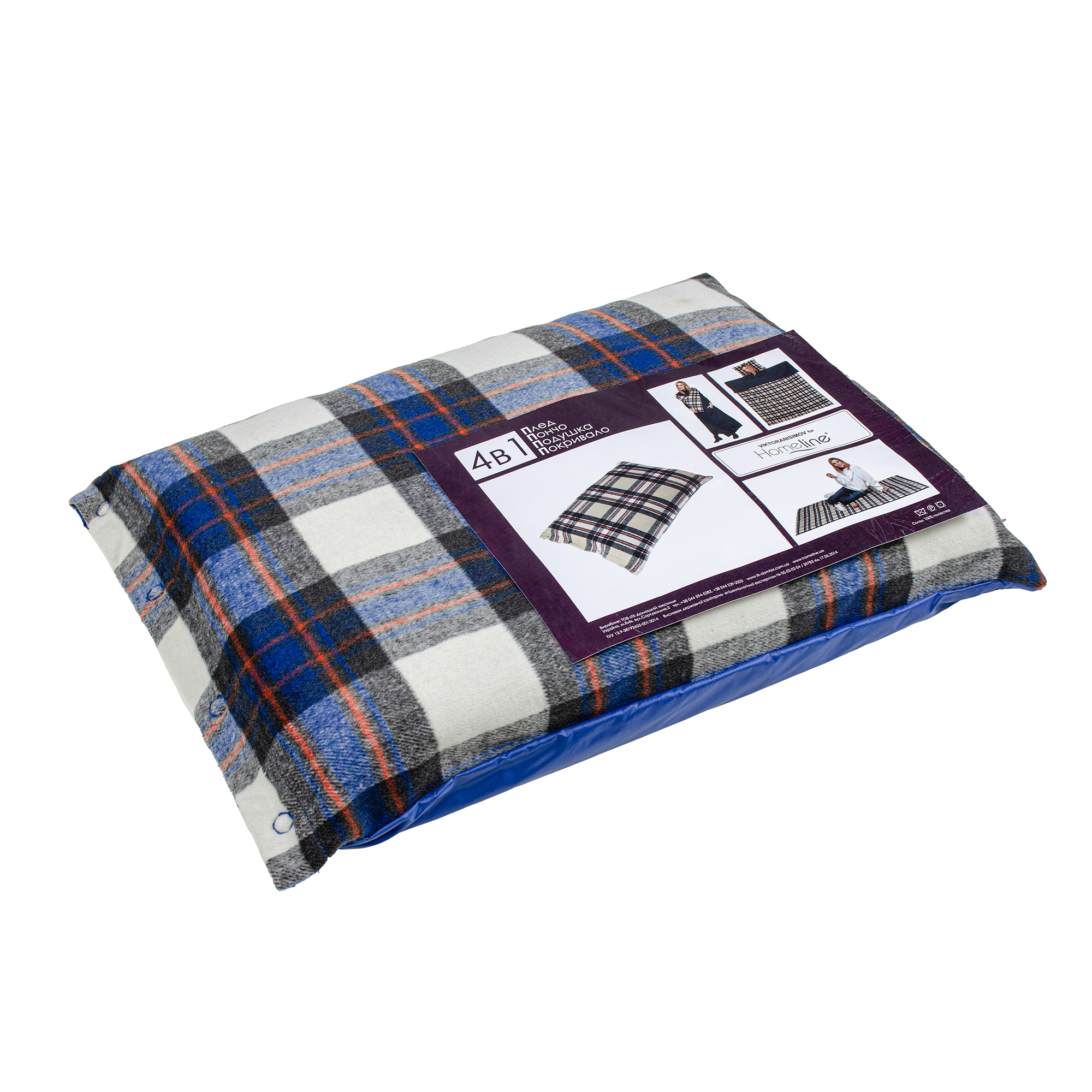 Плед-трансформер 4 в 1 (клітинка синя) 140х190см 145268