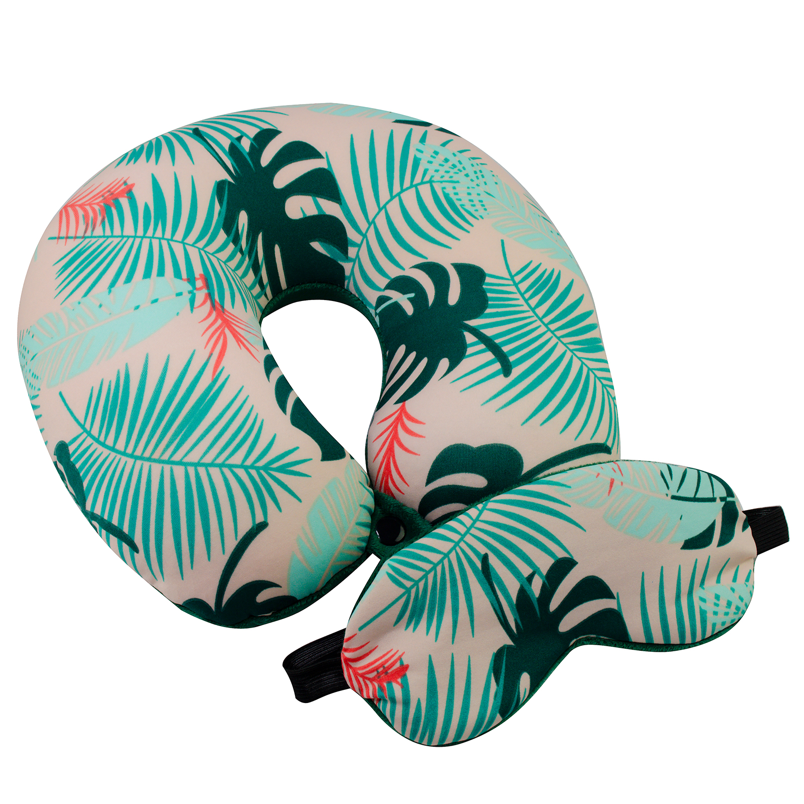Подушка-рогалик дорожня і пов'язка для очей Home Line "Пальмове листя" 30х30см 152634