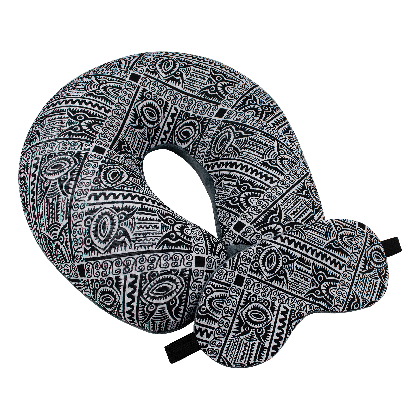Подушка-рогалик дорожня і пов'язка для очей Home Line "Чорний візерунок анімалістика" 30х30см 158799