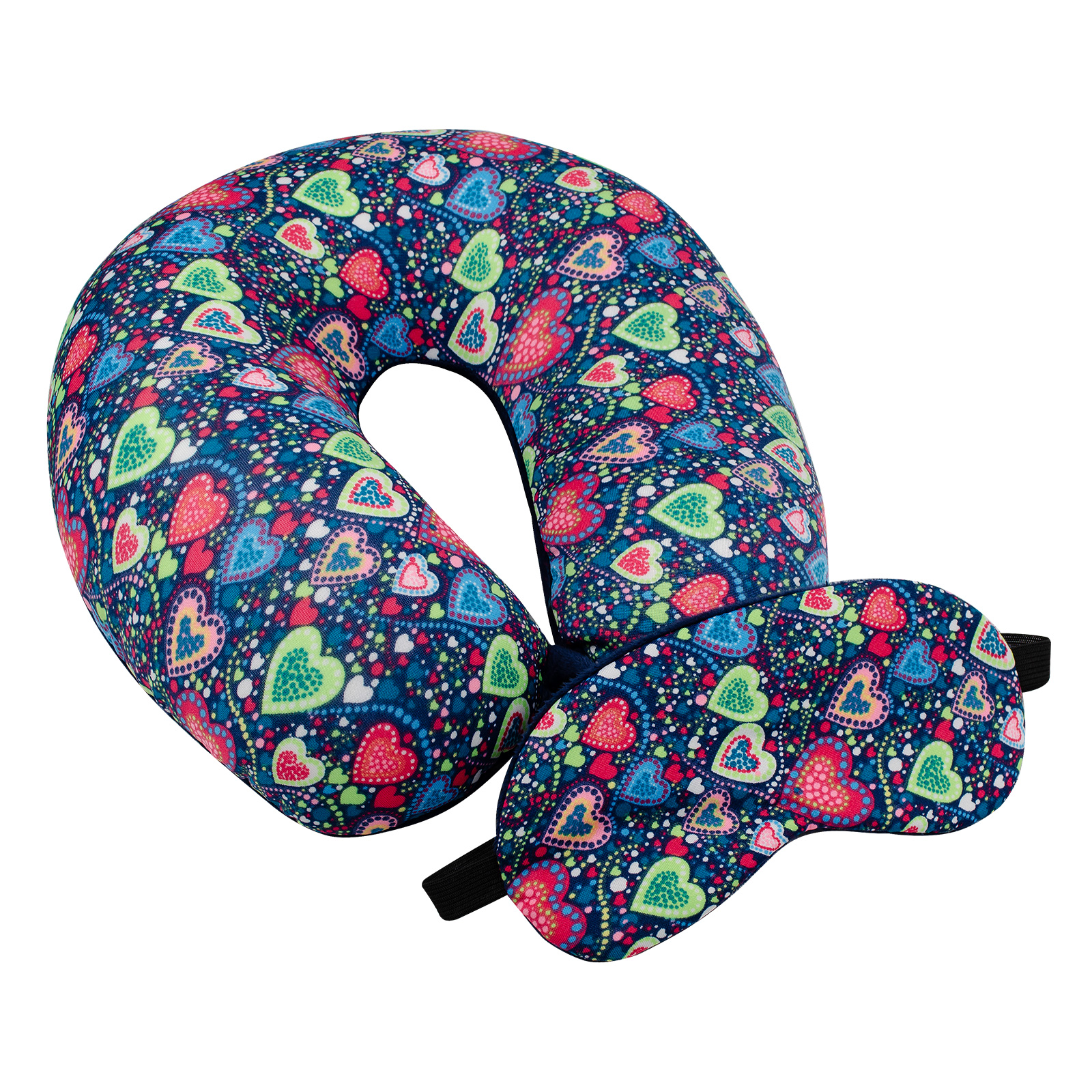 Подушка-рогалик дорожня і пов'язка для очей Home Line "Серця Монпансьє" 30х30см 158804