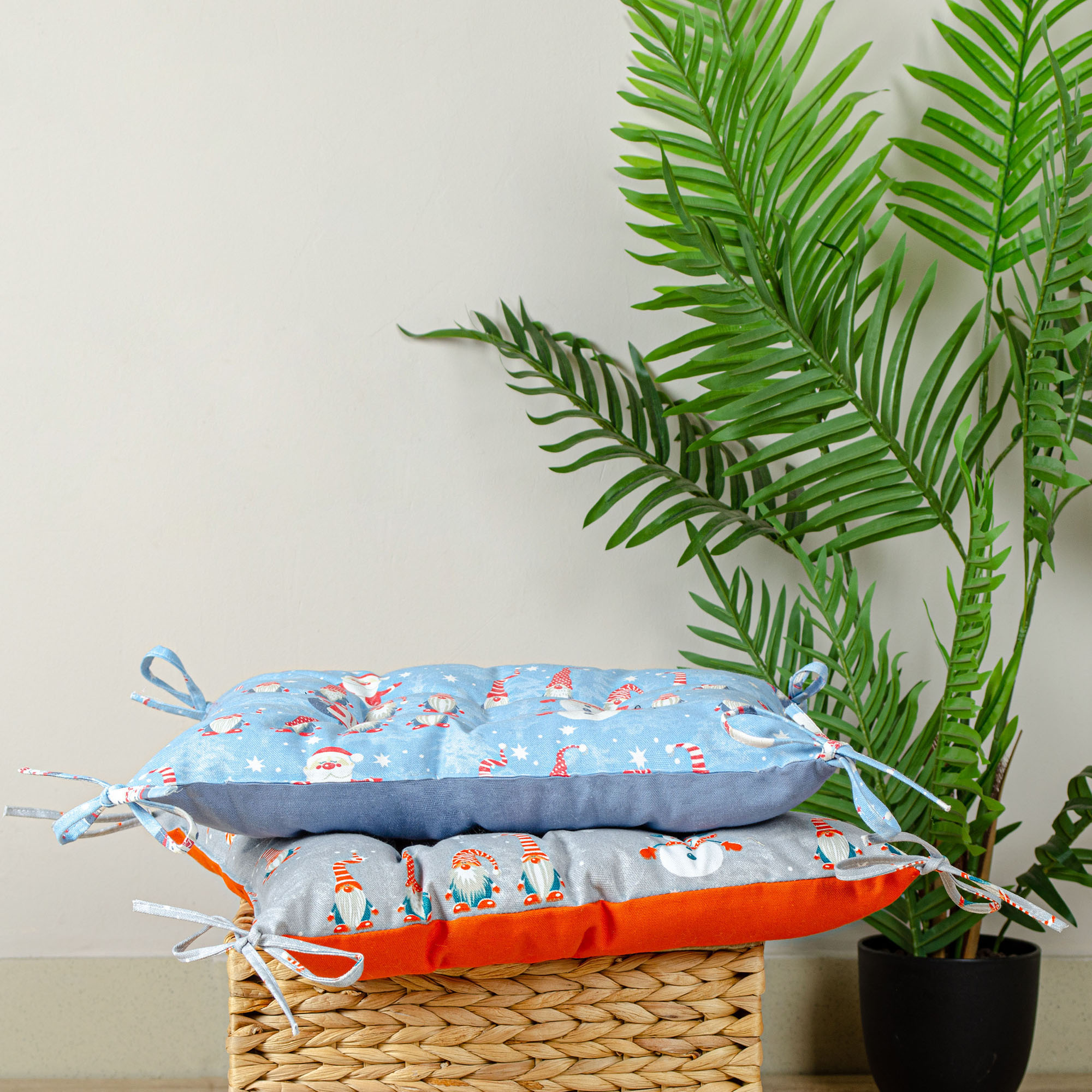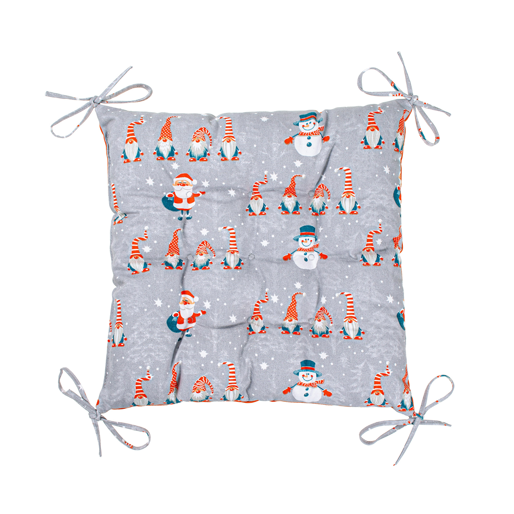 Подушка з зав'язками на стілець Home Line Гноми двостороння 40х40 см сіро-помаранчевий 178513