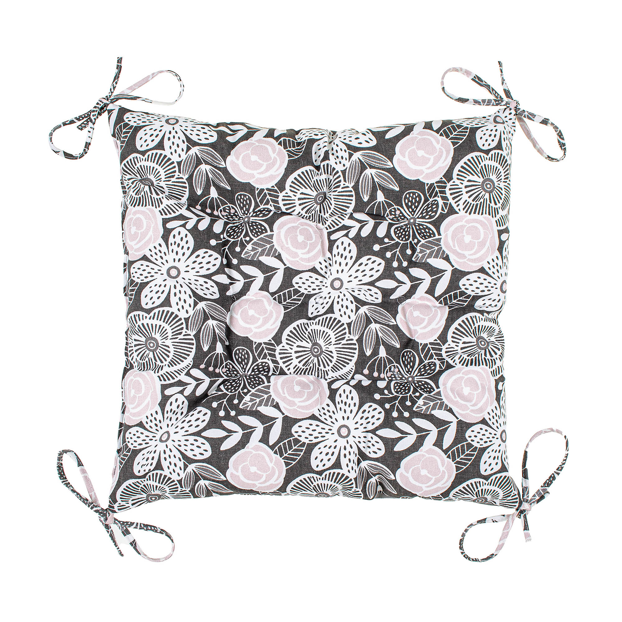 Подушка з зав'язками Home Line "Квіти" (графітово-фрезові/грета сіра) 40х40см 180139