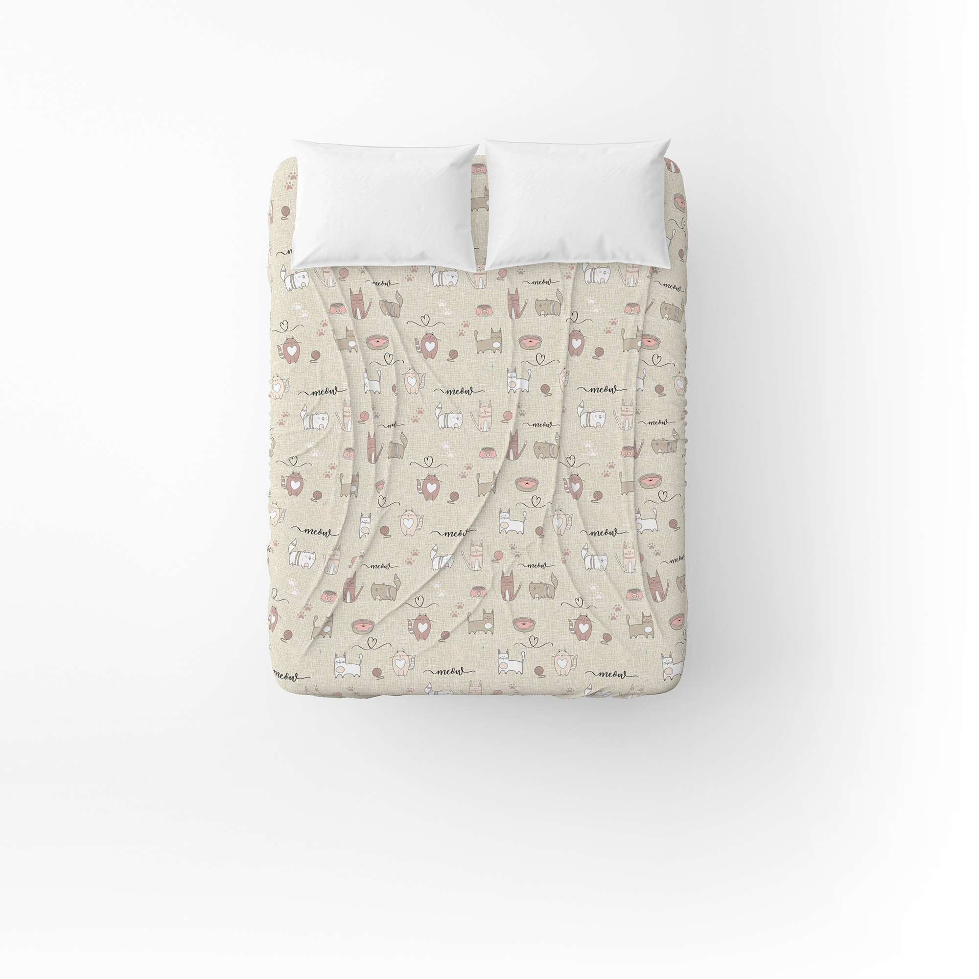 Простирадло бязеве Home Line "Котяча Радість" 150х215см (пісчано-рожевий) 175859