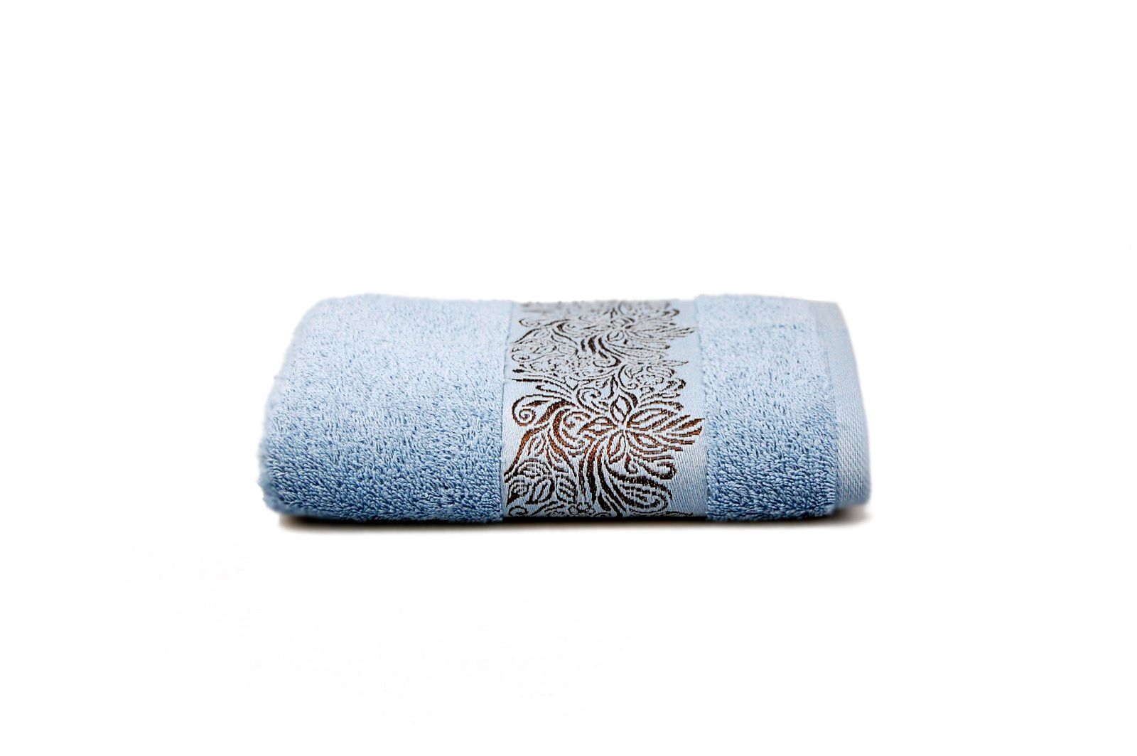 Махровий гладкофарбований рушник з рослинним орнаментом контрастного кольору на бордюрі. Орнамент виконаний віскозною ниткою, що додає йому вишуканого блиску і елегантності. Рушник виконаний у модному кольорі, що не залишать байдужими ані жінок, ані чоловіків.