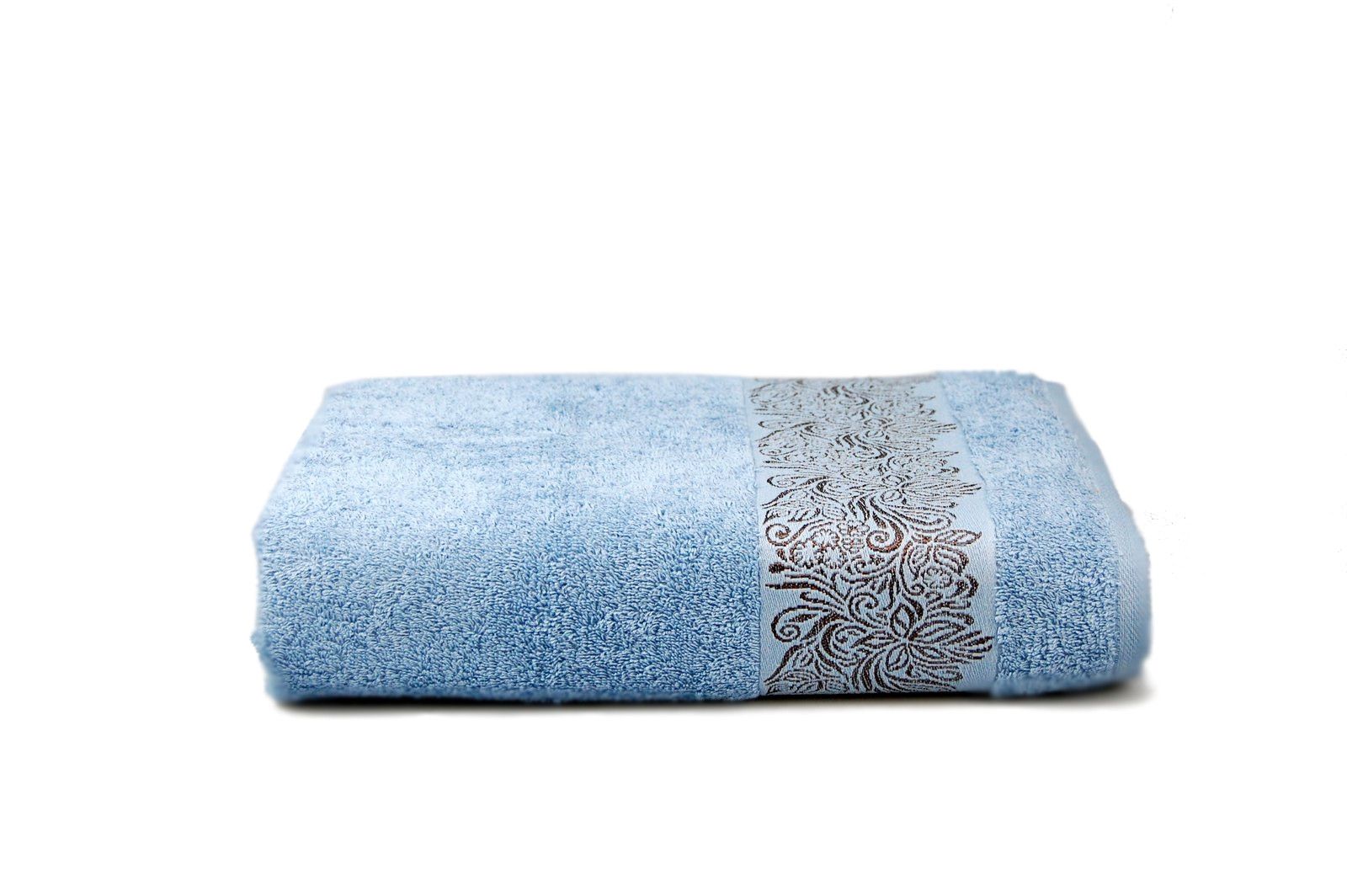 Махровий гладкофарбований рушник з рослинним орнаментом контрастного кольору на бордюрі. Орнамент виконаний віскозною ниткою, що додає йому вишуканого блиску і елегантності. Рушник виконаний у модному кольорі, що не залишать байдужими ані жінок, ані чоловіків.