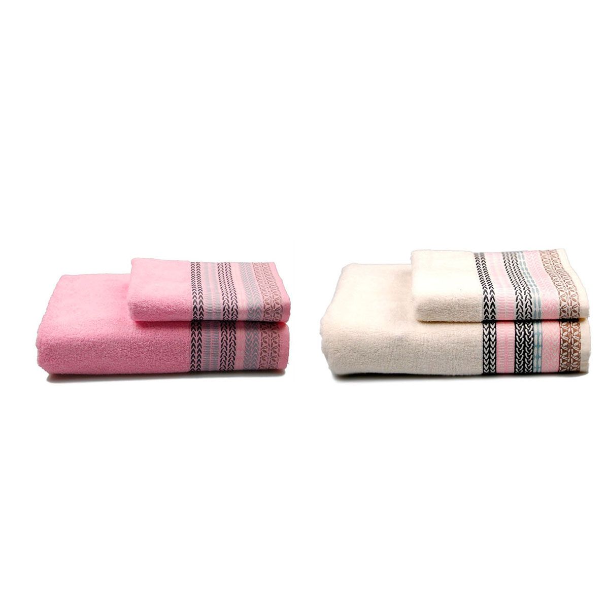Набір махрових рушників 2 шт. Home Line "Етно" (кремовий, рожевий), 70х140см 130542