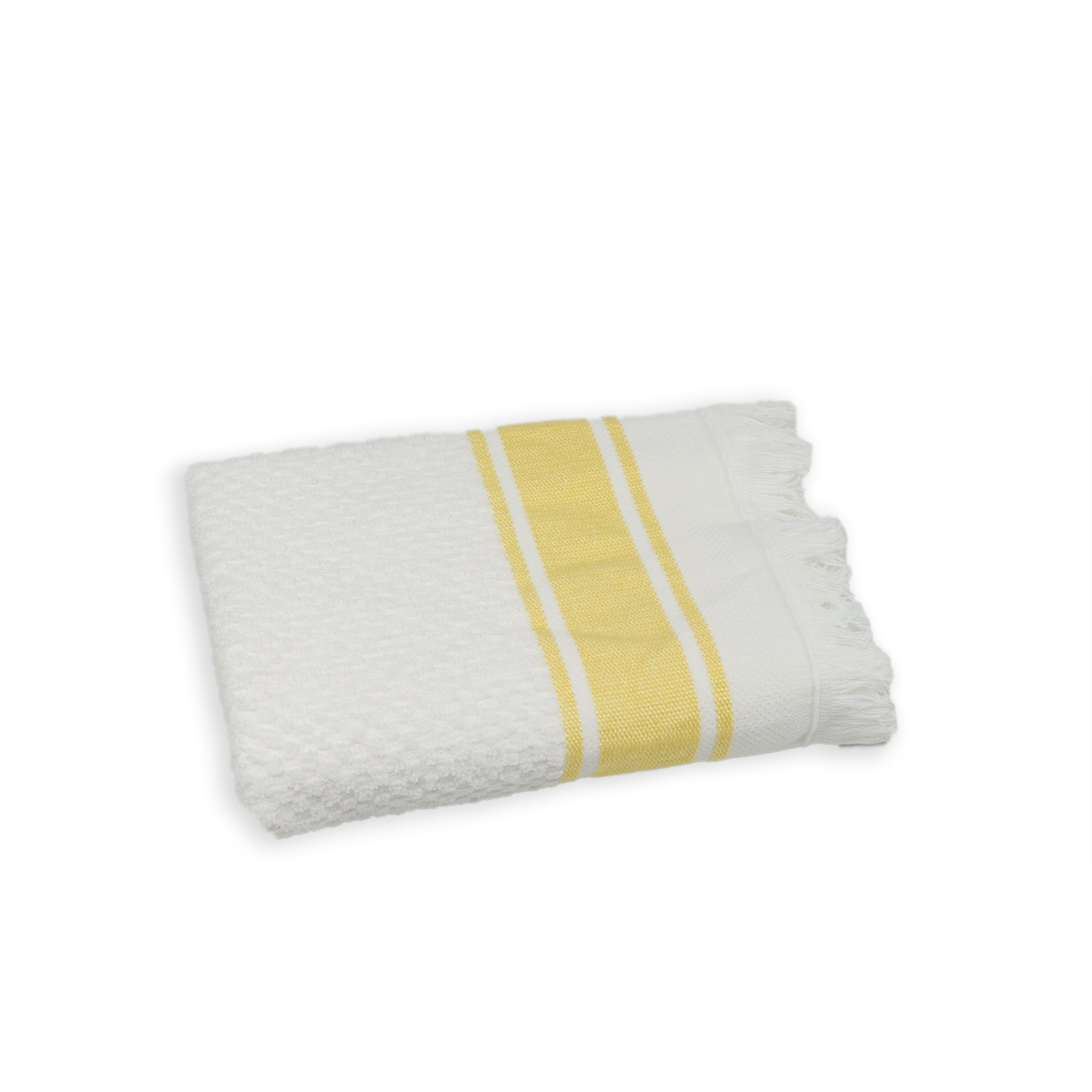 Білий махровий рушник з бордюром і легкою бахромою чудово доповнить інтер'єр ванної кімнати. Він м'який, приємний до тіла. Рушник виготовлений із натуральної бавовни, відмінно вбирає вологу і швидко сохне. Він стане чудовим подарунком з будь-якого приводу.