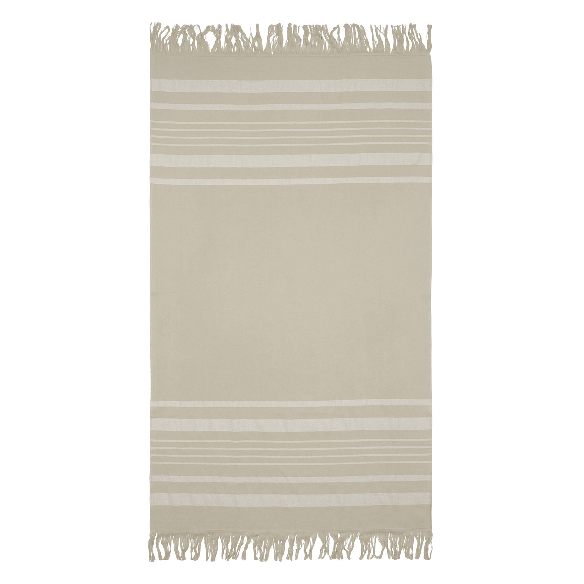 Рушник махрово-тканий пляжний "Смугастий бордюр" з бахромою (бежевий) 90х160см 163086