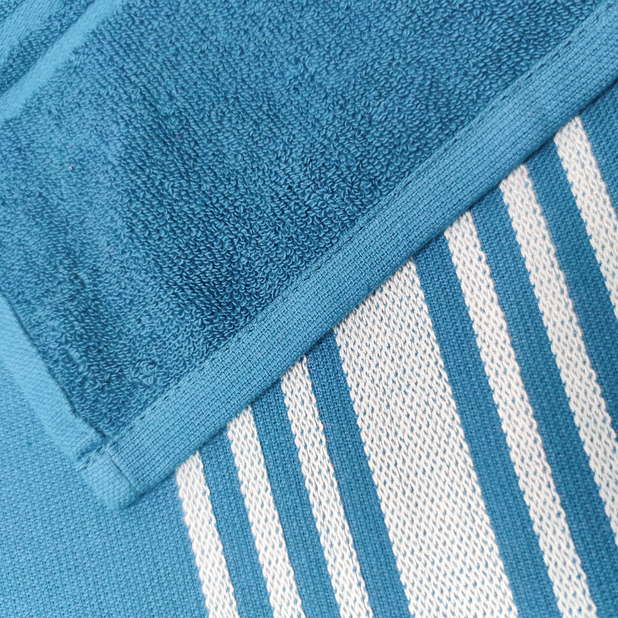 Рушник махрово-тканий пляжний "Смугастий бордюр" без бахроми (синій) 90х160см 163186