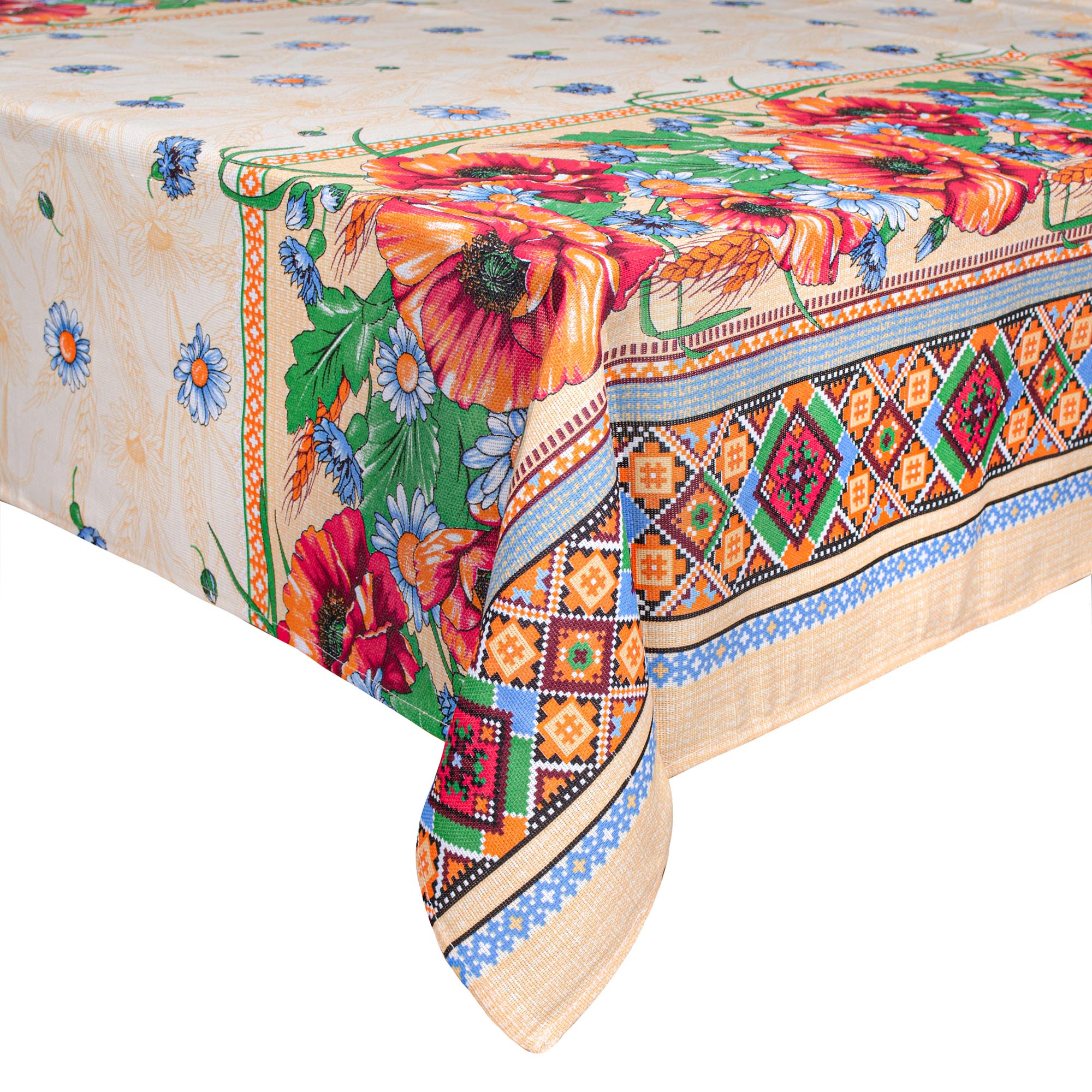 Скатертина рогожка "Маки та ромашки" 150х150см 129093