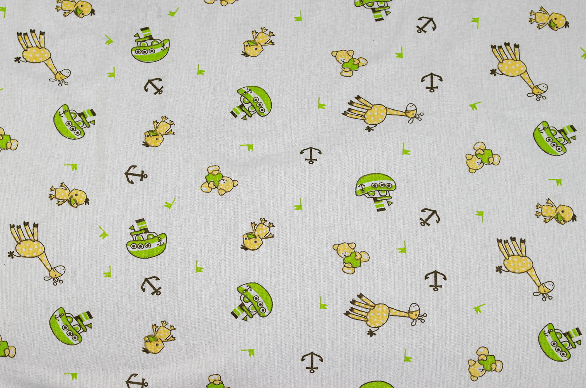Поплін набивний "Жираф та качка" салатовий 150см (105г/м2) 153322