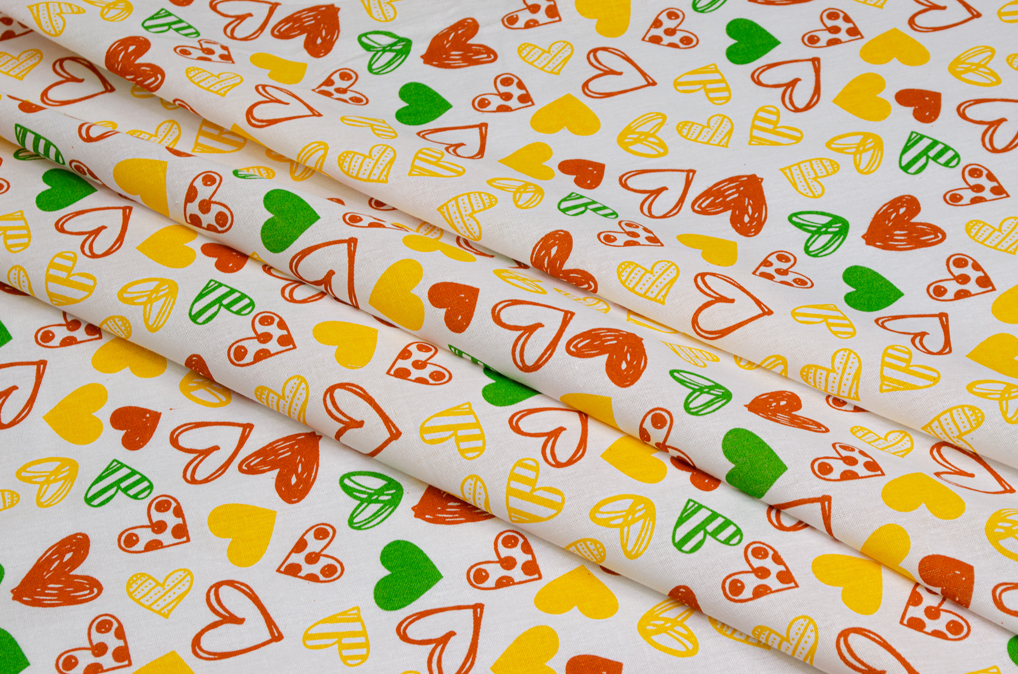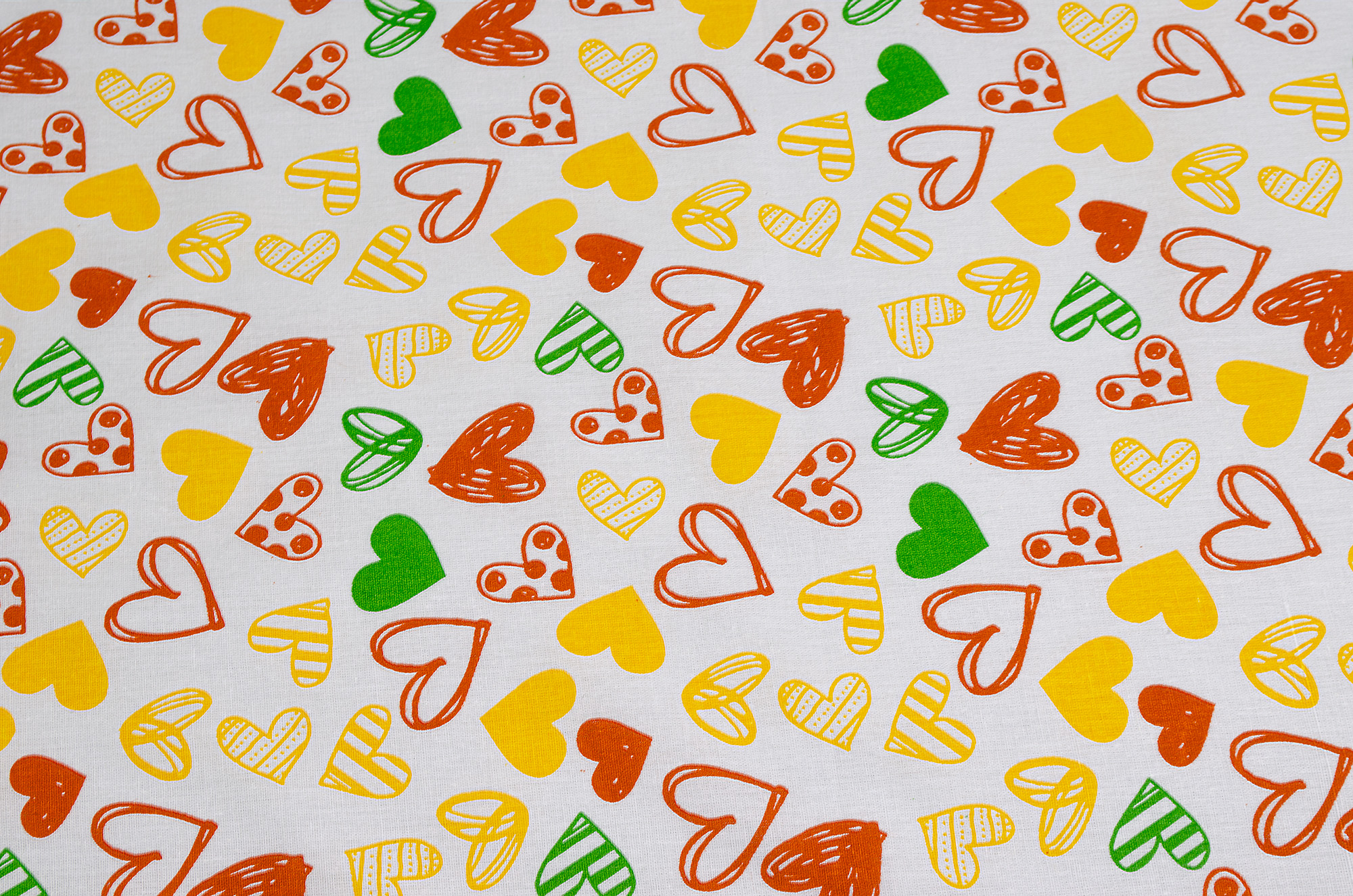 Бязь набивна "Серця" жовта 150см (120г/м2) 154959